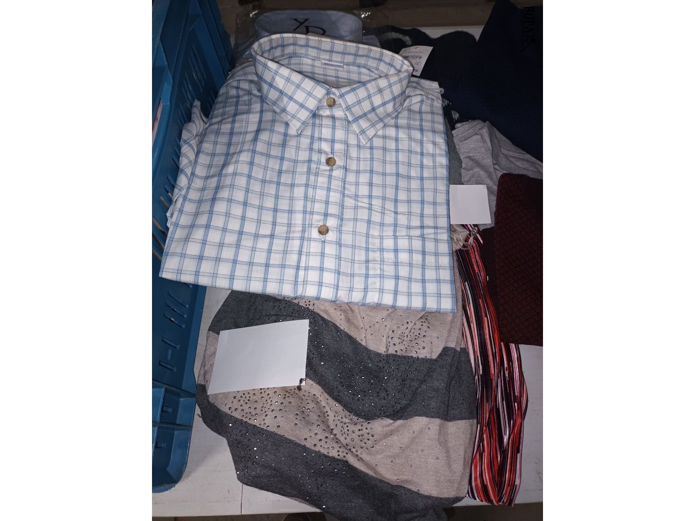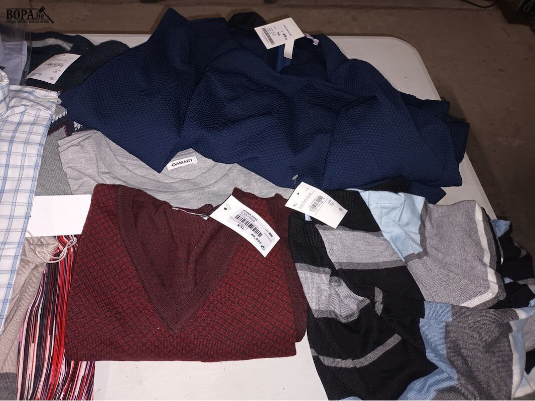 Lot kledij voor dames en heren. Meestal nieuw met prijskaartje. Bak niet inbegrepen.