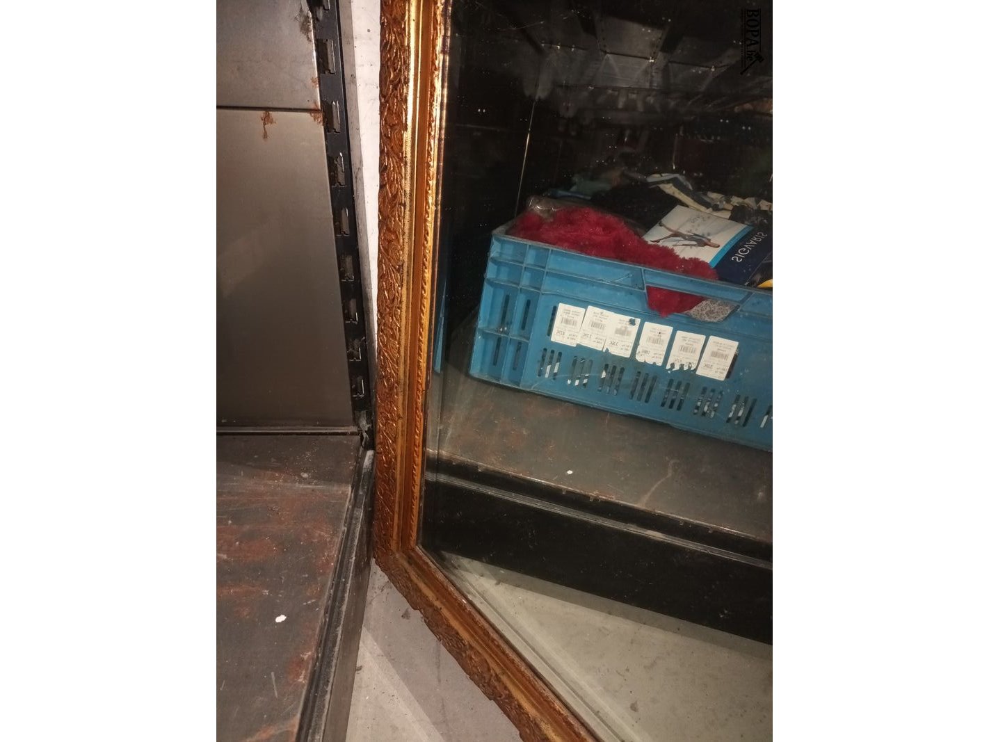 Grote geslepen spiegel in vergulde lijst met kuif. 75 x 145 cm.