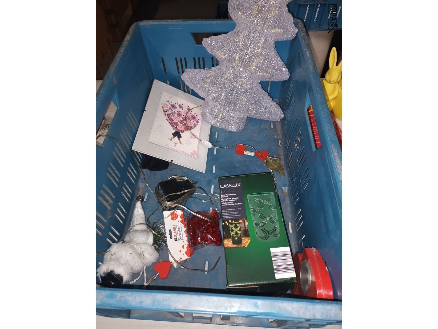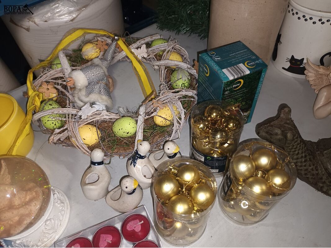 Decoratie. 22 stuks kerstdecoratie, paasdecoratie, SRD rumfles, metalen slak. Bak niet inbegrepen.