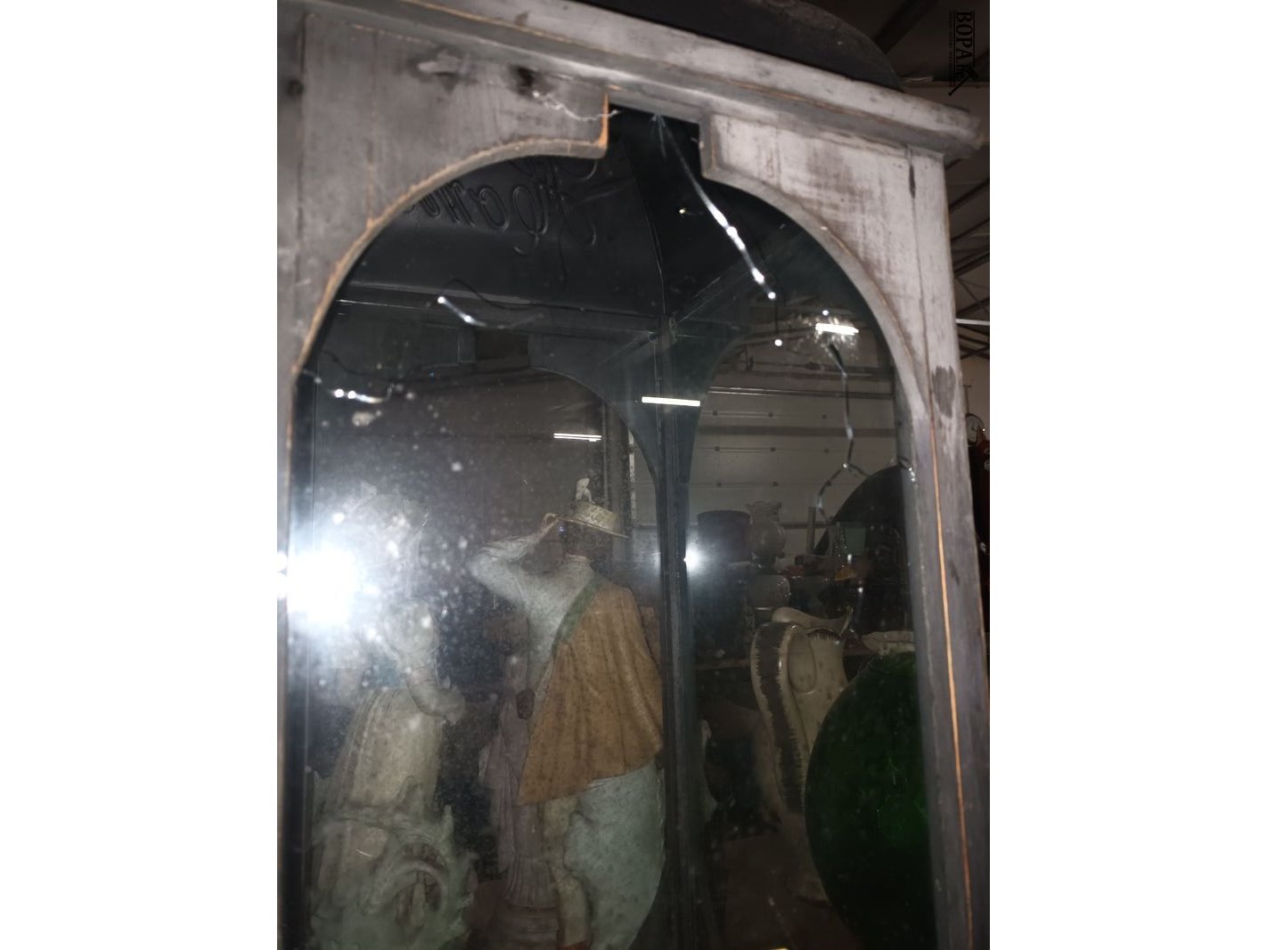 Houten windlicht met 1 ruitje gebarsten. 30 x 30 x 80 cm.