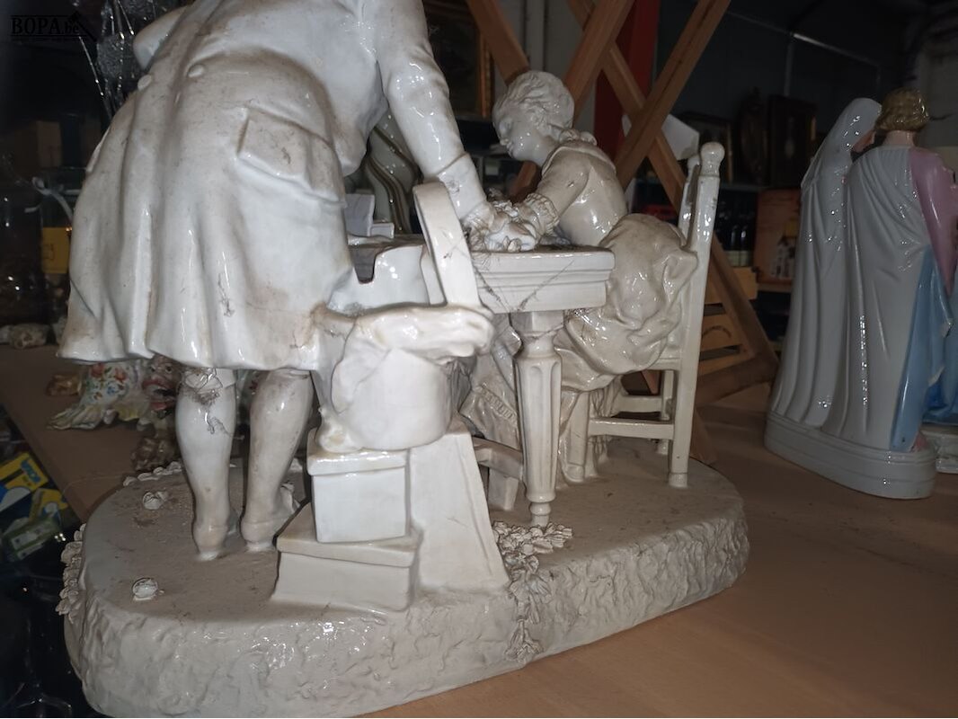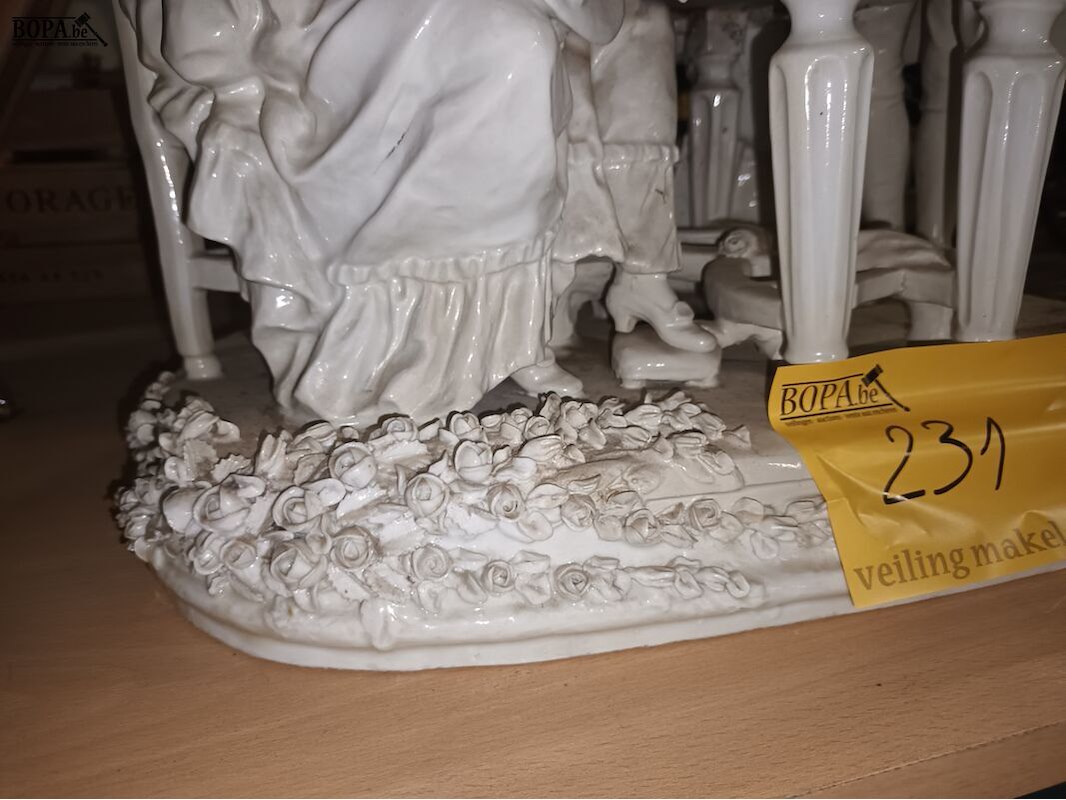 Beeld in porselein “hofmakerij”. 40 x 25 x 40 cm.