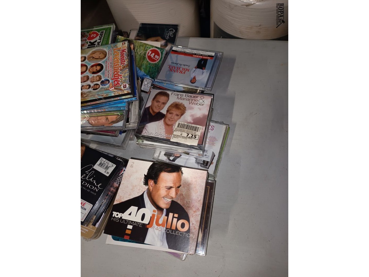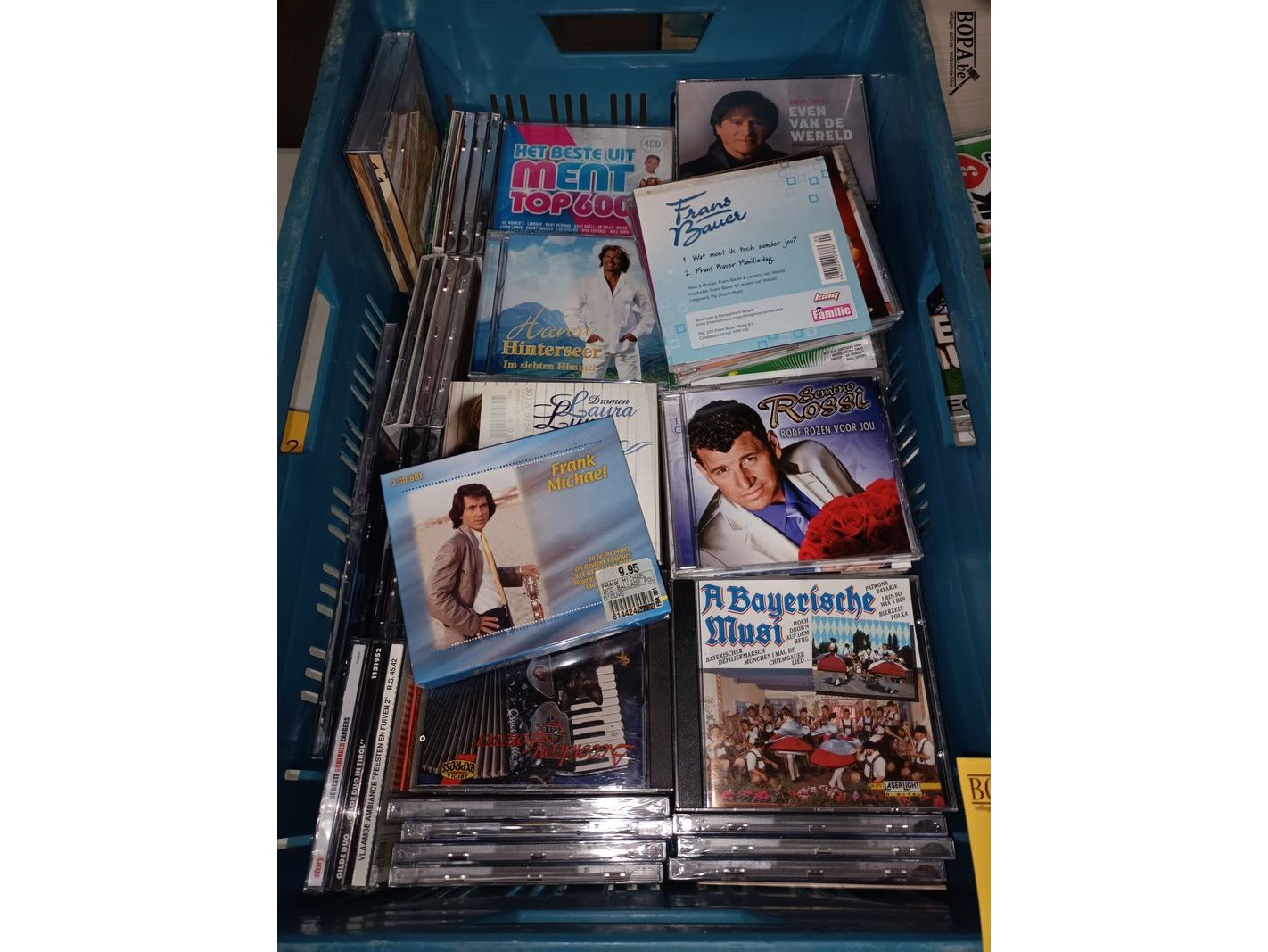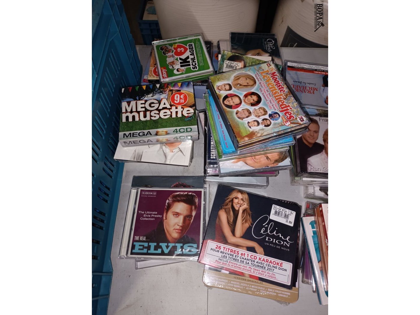 Bak met muziek cd’s waarvan veel nog nieuw en gesealed.