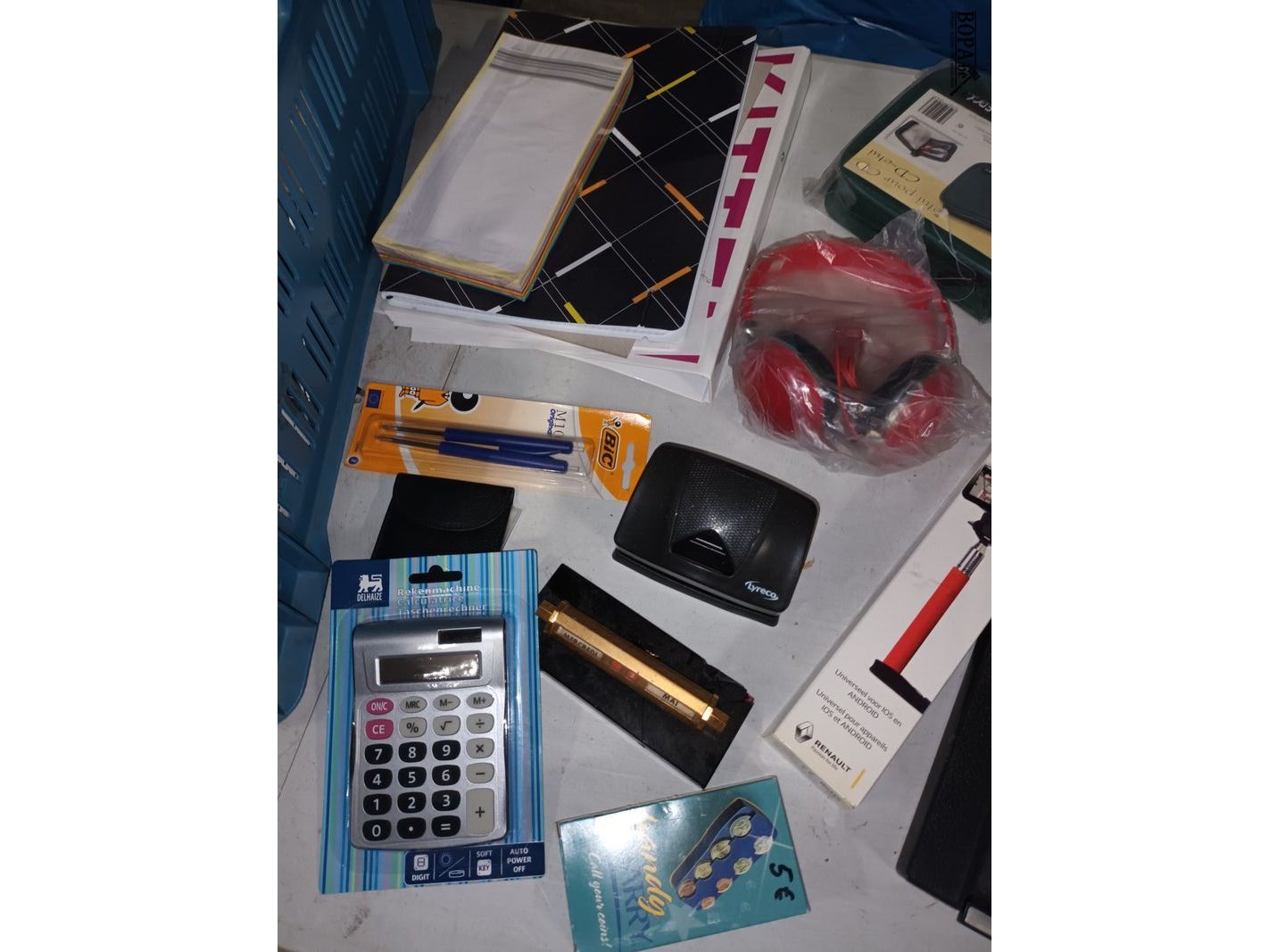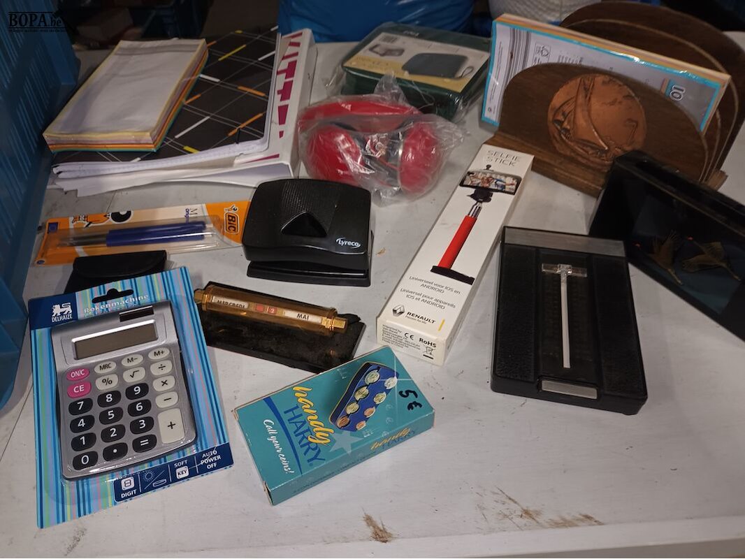 Lot kantoormateriaal. Bak niet inbegrepen.
