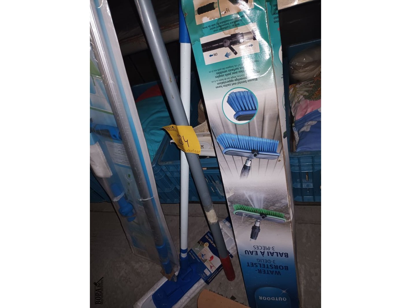 Poetsmateriaal. 6 stuks. Borstels, telescopische stelen, vloerpoetsset.
