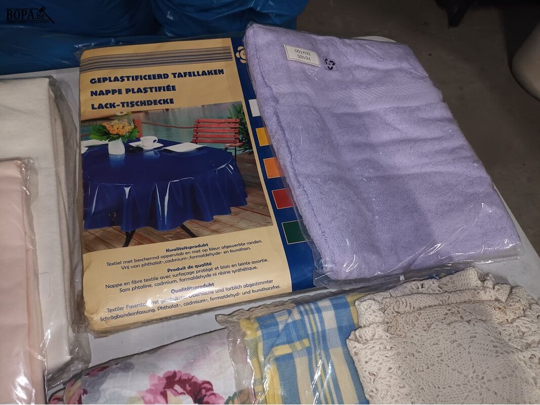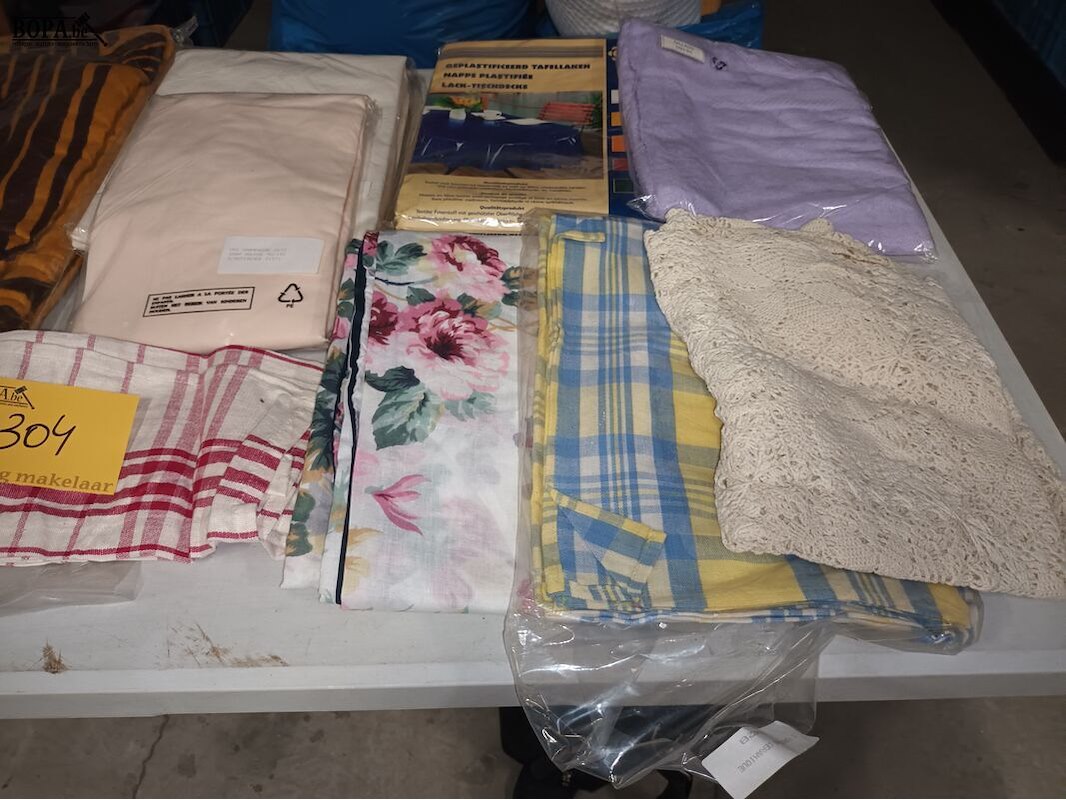 Linnen. 10 stuks. Tafelkleden, badhanddoek, keukenhanddoeken.