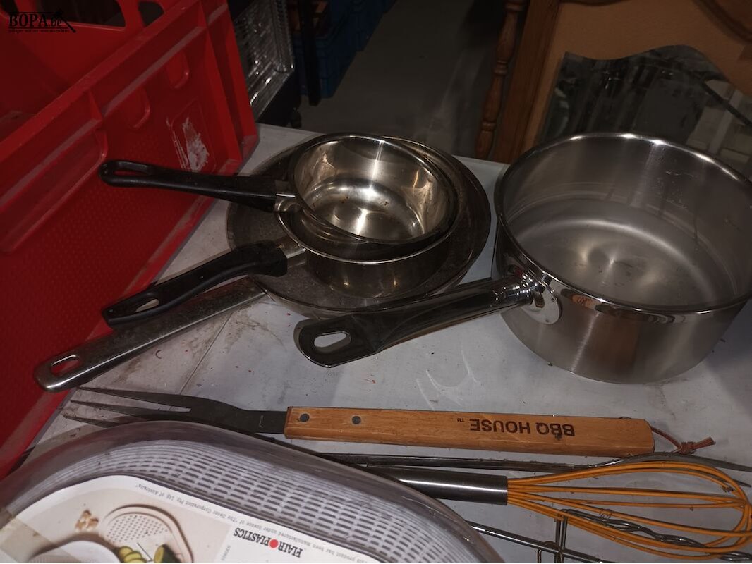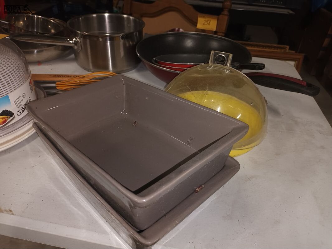 Keukengerei. 15 stuks zoals pannen, ovenschalen, vergiet, etc. Bak niet inbegrepen.