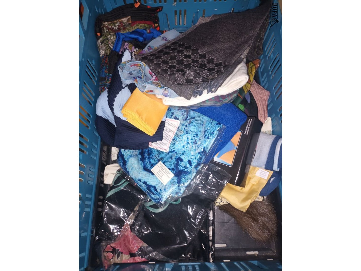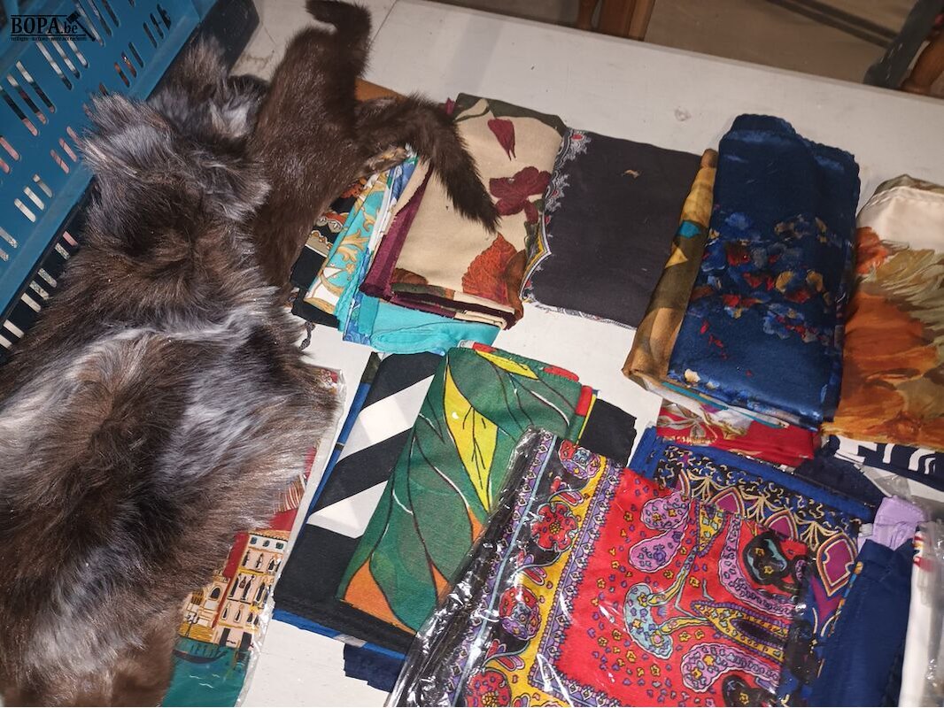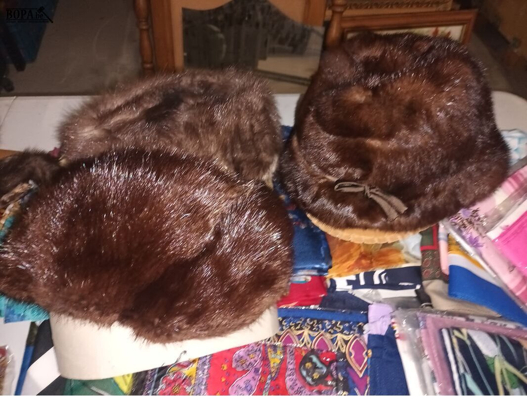 Lot sjaals, bontmutsen en bontsjaals. Bak niet inbegrepen.