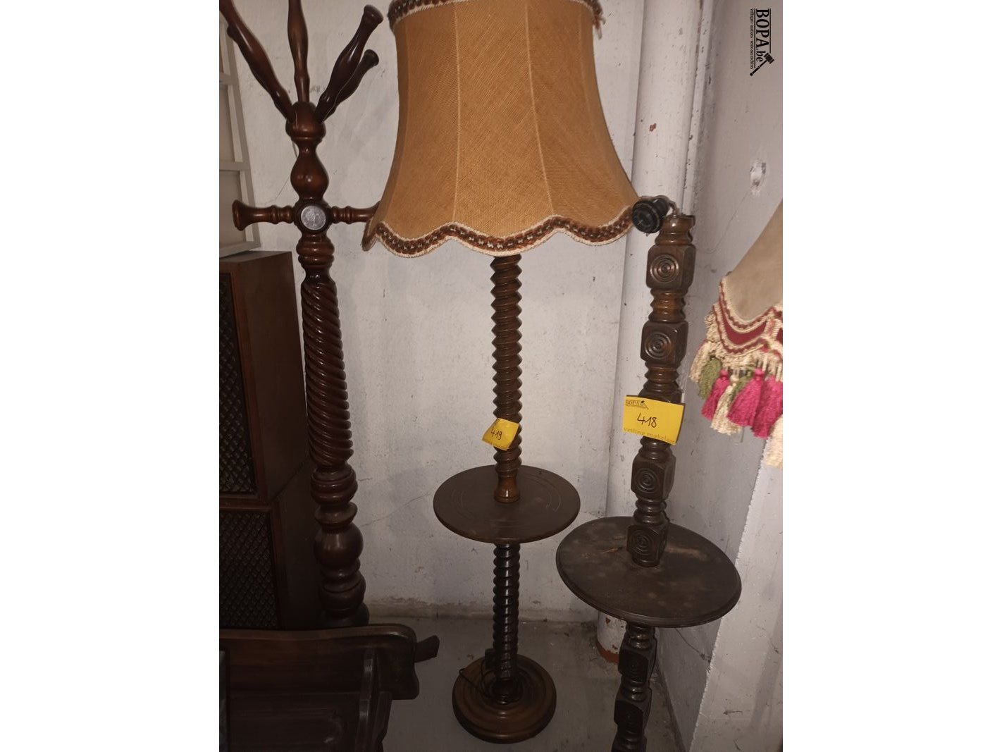 Lot 419 - houten vloerlamp met kap