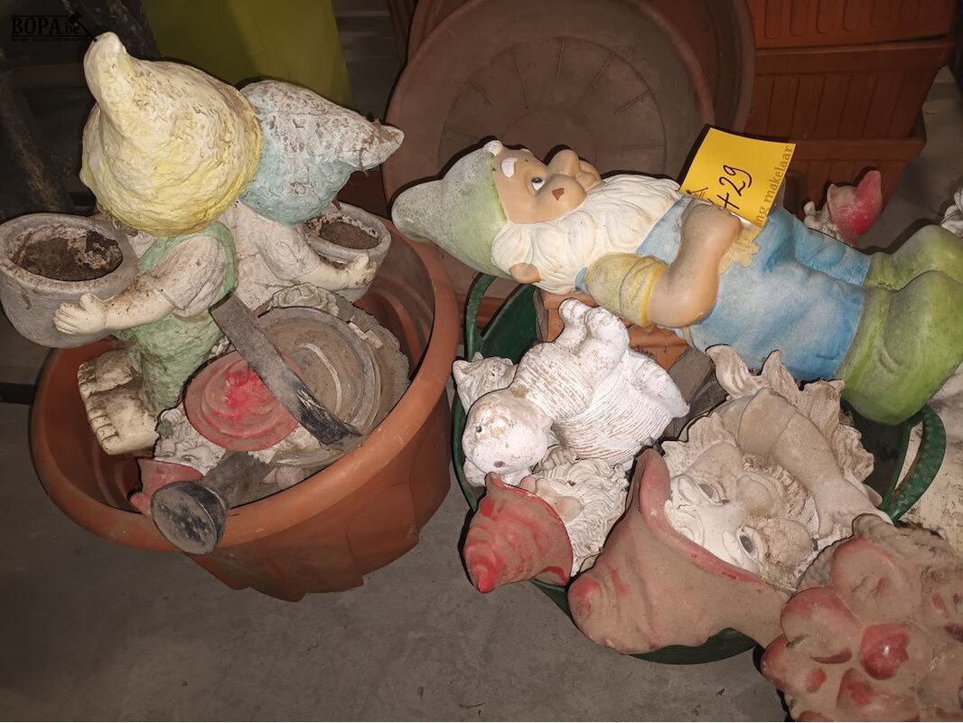 Tuinbeelden en bloempotten. 16 stuks.