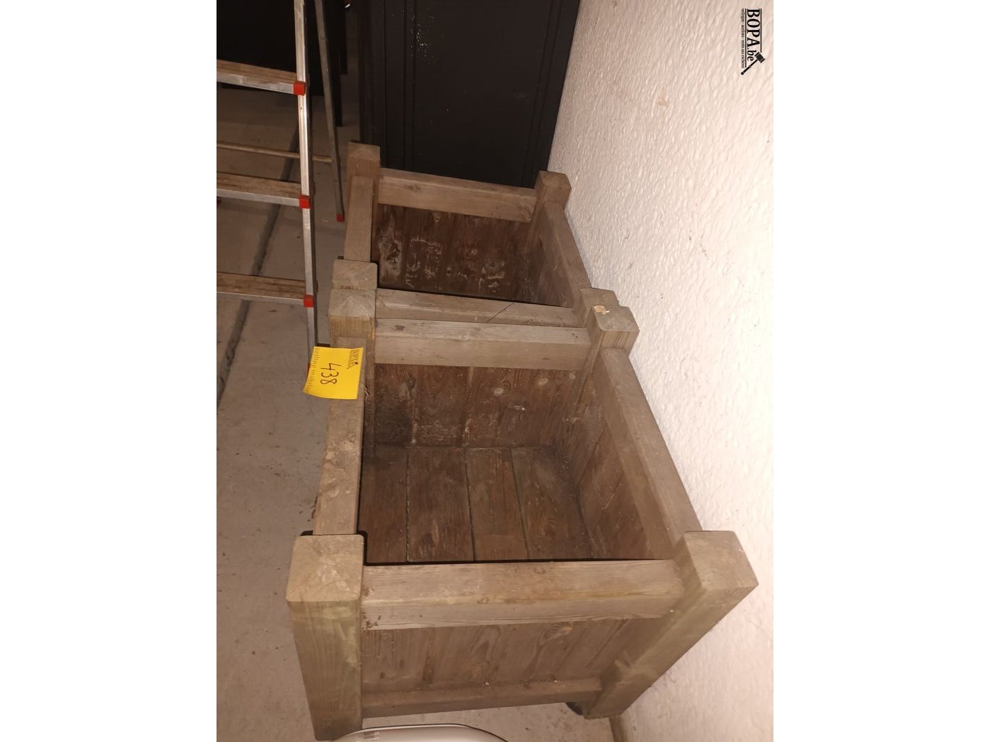 Lot 438 - houten bloembakken op wielen. 2 stuks