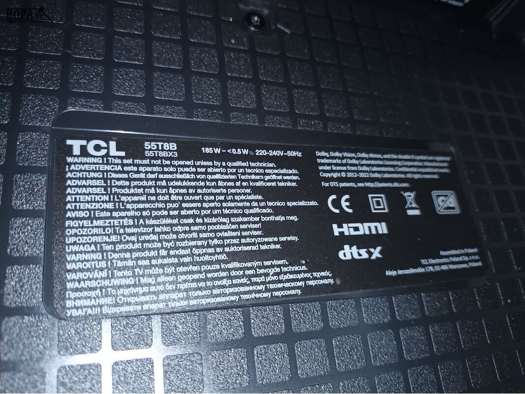 55” flat 4K Q-LED TV TCL model 55T8B.