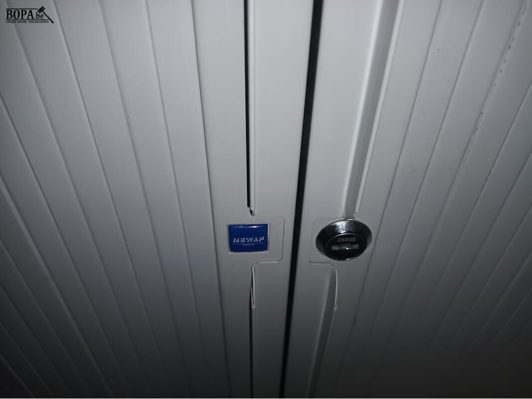 Lage roldeurkast Mewaf zonder sleutel. 120 x 49 x 73 cm.