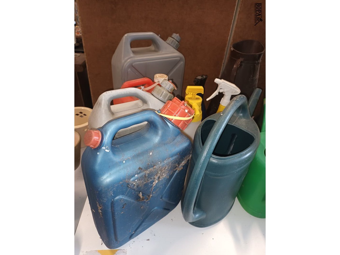 Lot 44 - tuingereedschap en bidons. 15 stuks
