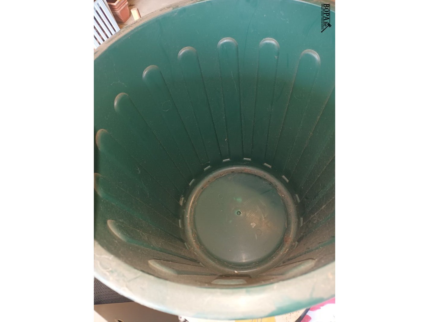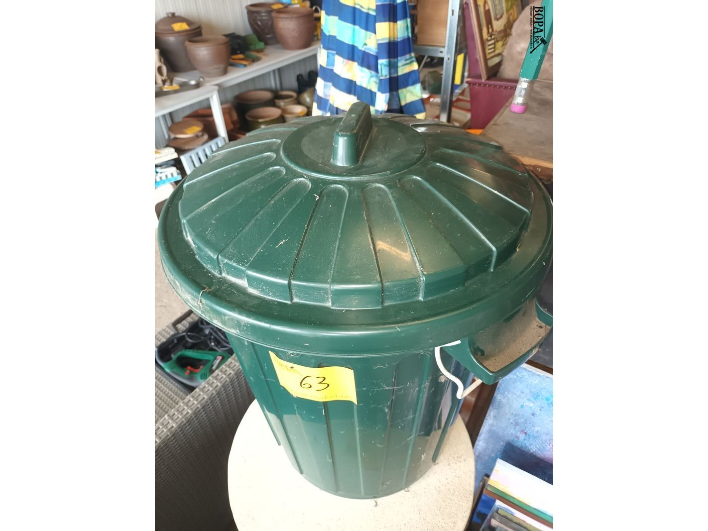 Afvalbak met deksel. Diameter 50cm, hoogte 55cm.
