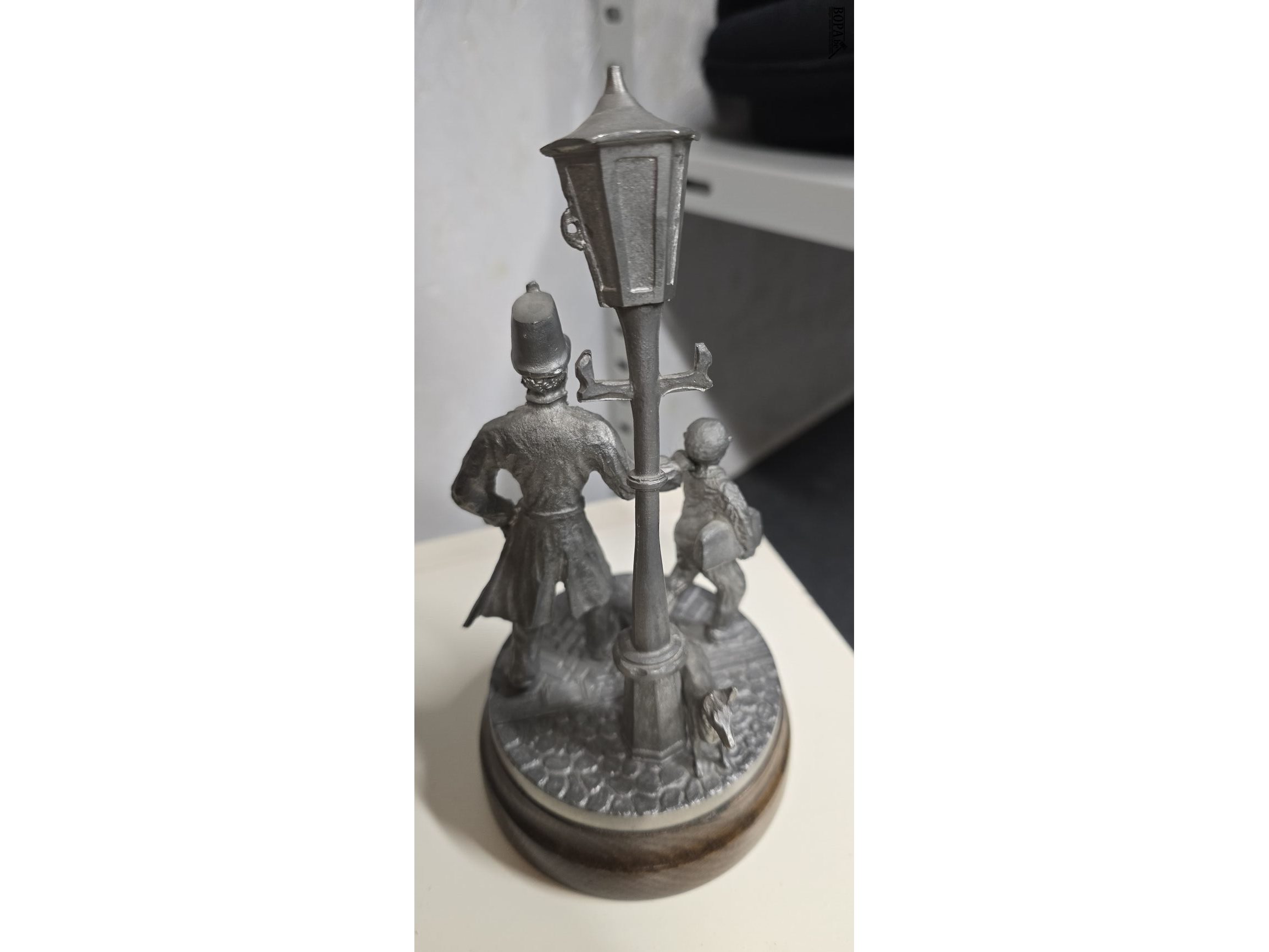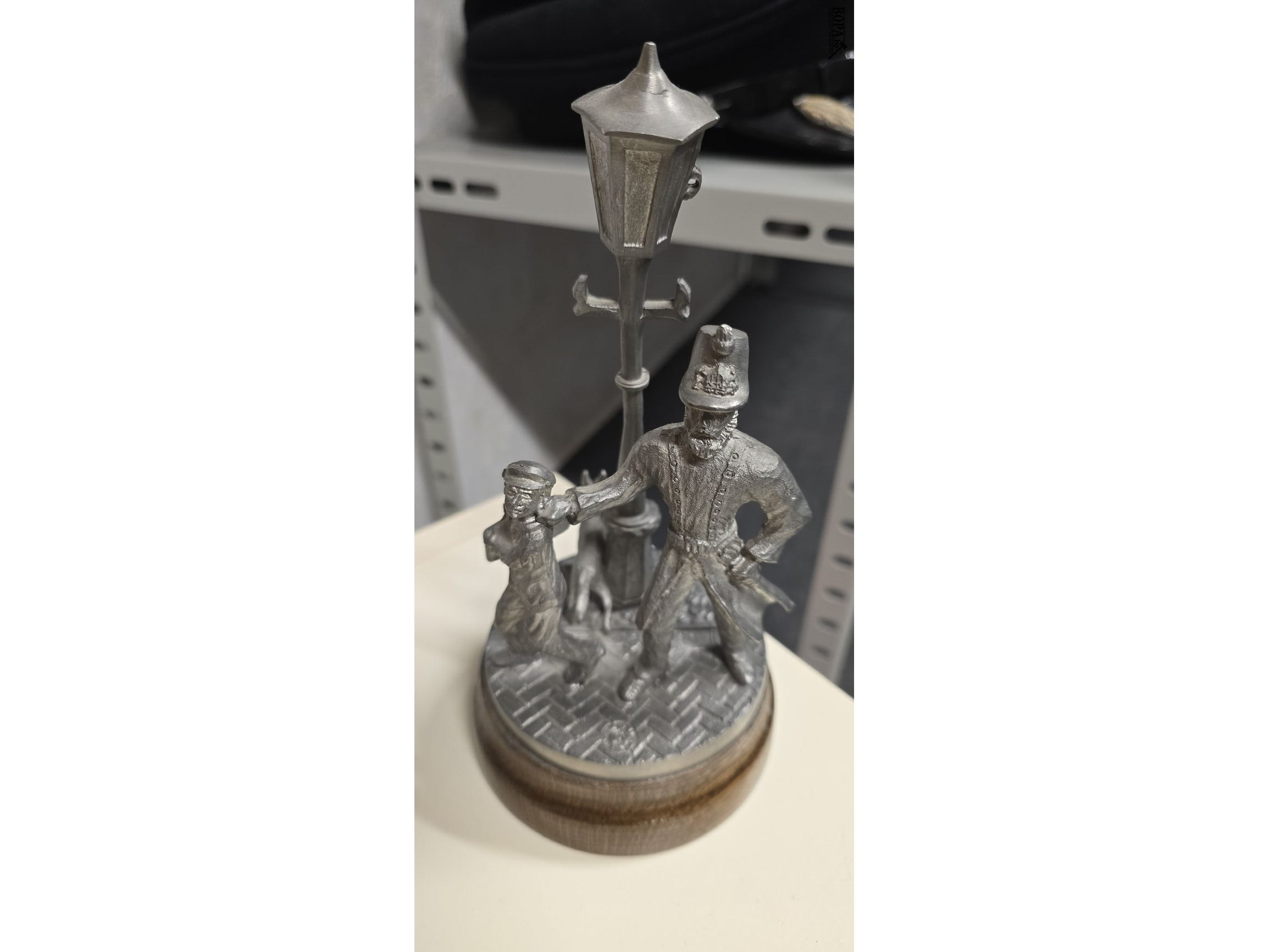 Beeldjes Ipa Oost Vlaanderen en Gendarm met stout kind en porseleinen bewaardoos met deksel