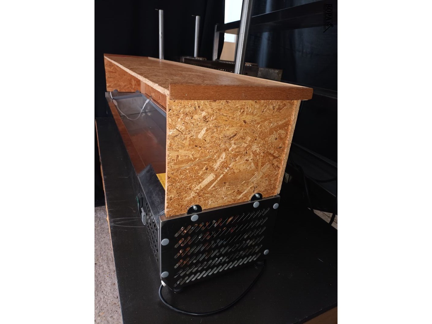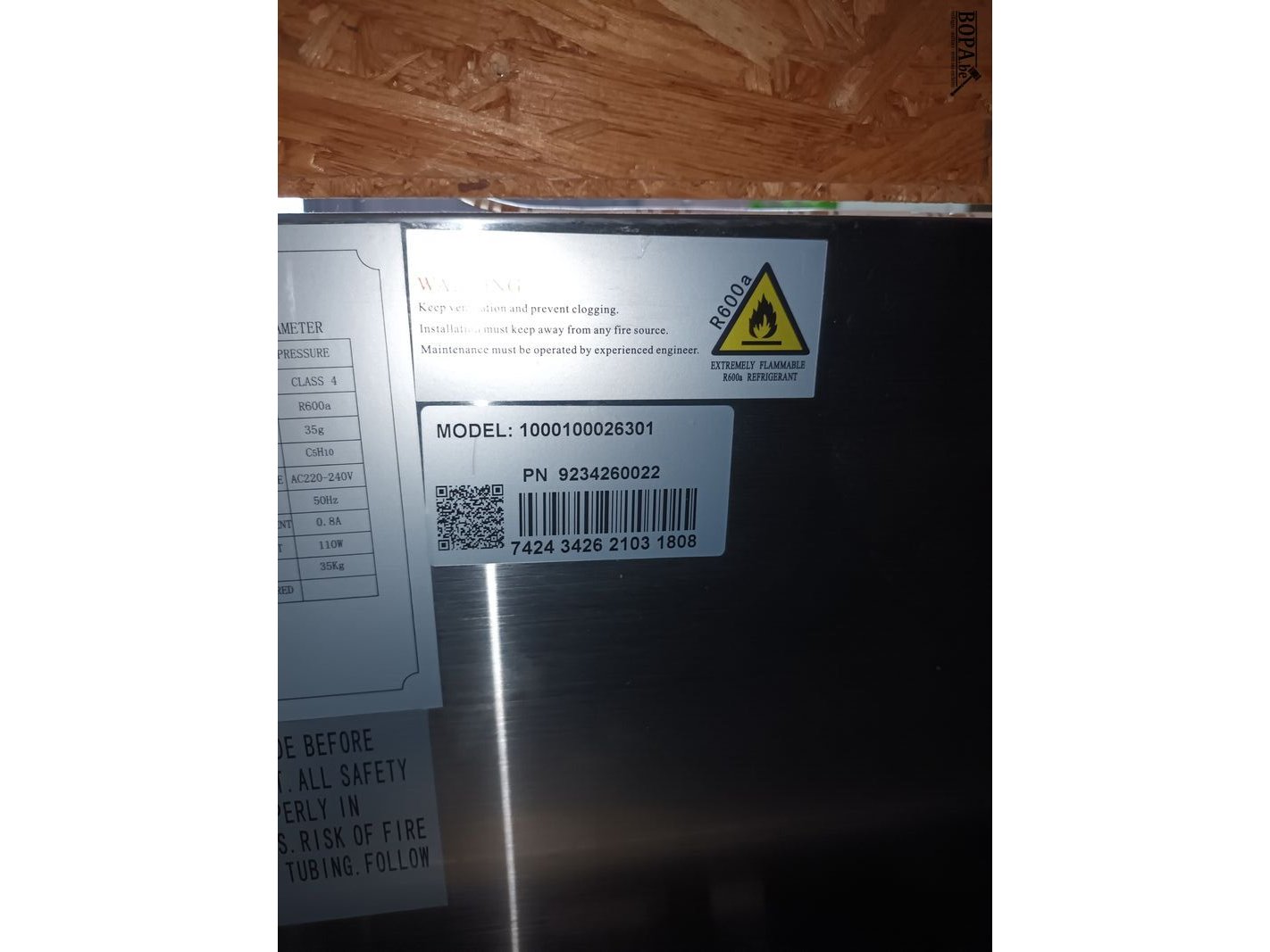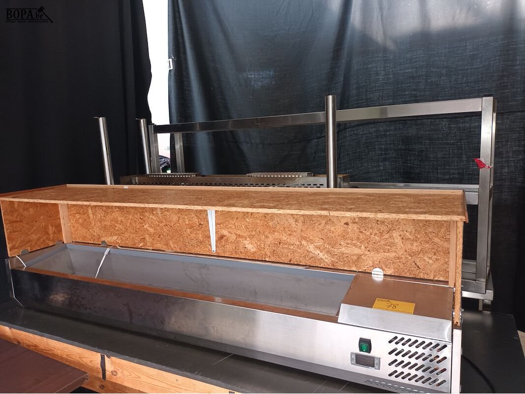 Gekoelde saladebar met houten scherm. Het glazen scherm is ook bijgeleverd maar moet nog gemonteerd worden. 180 x 34 x 53 cm.