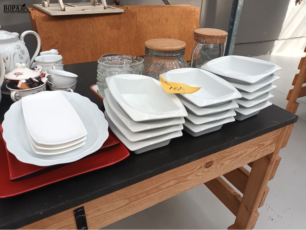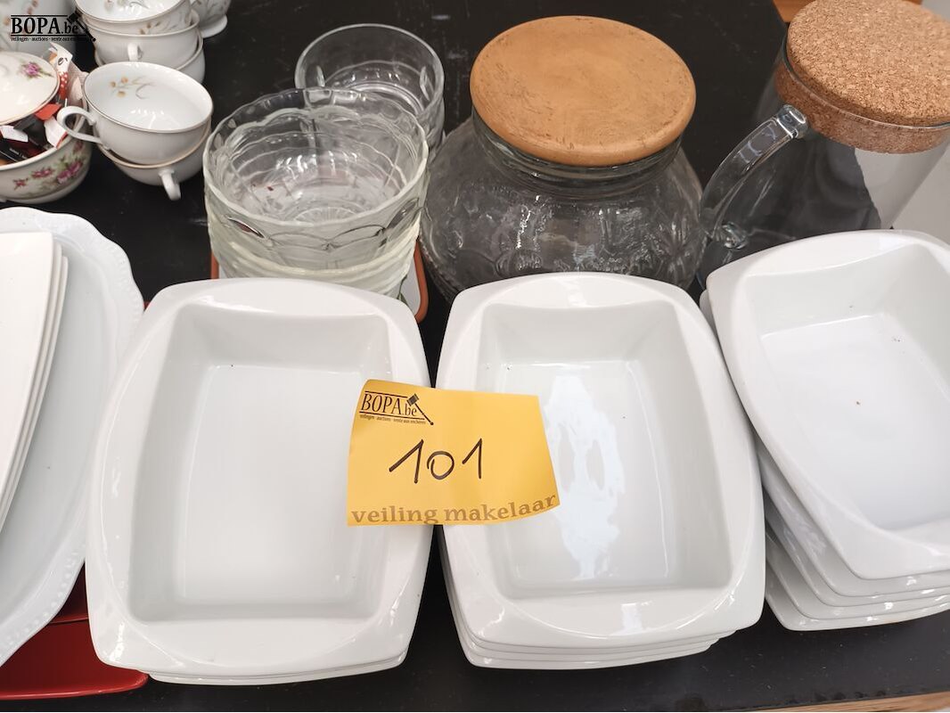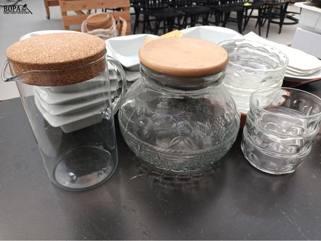 Divers keukengerei zoals schalen, bokalen en borden.
