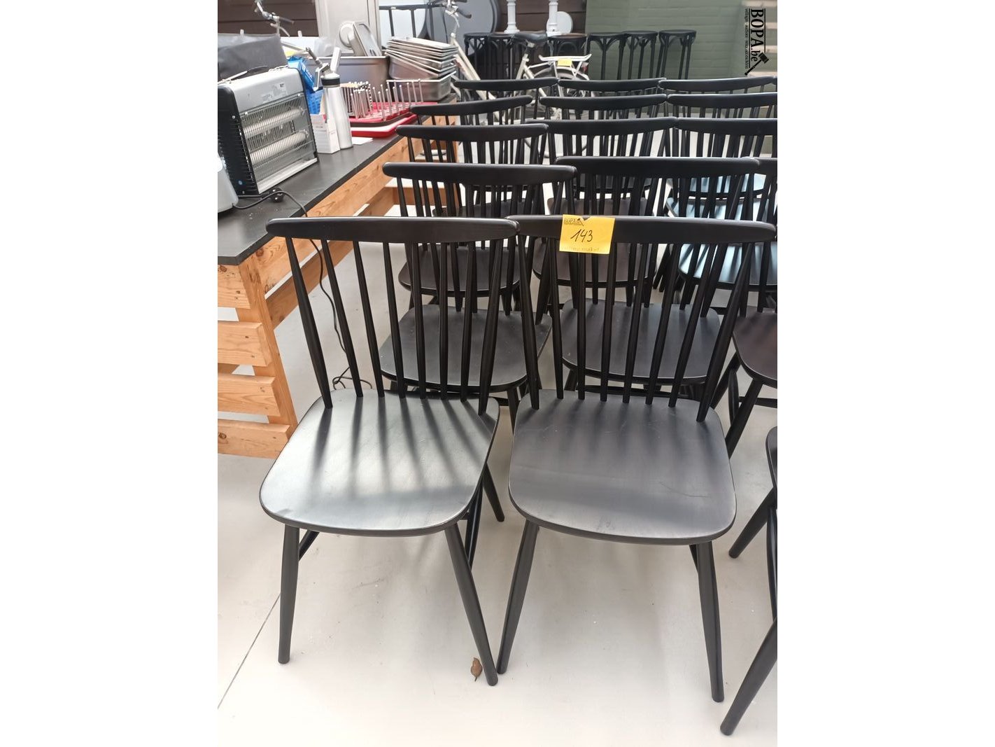 Lot 143 - zwarte houten spijlenstoel. 10 stuks