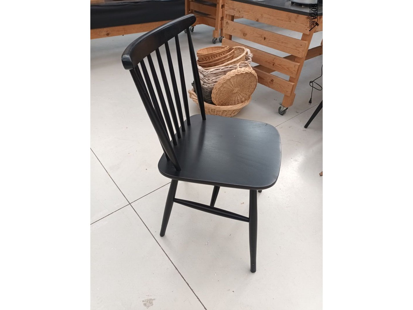 Zwarte houten spijlenstoel. 10 stuks.