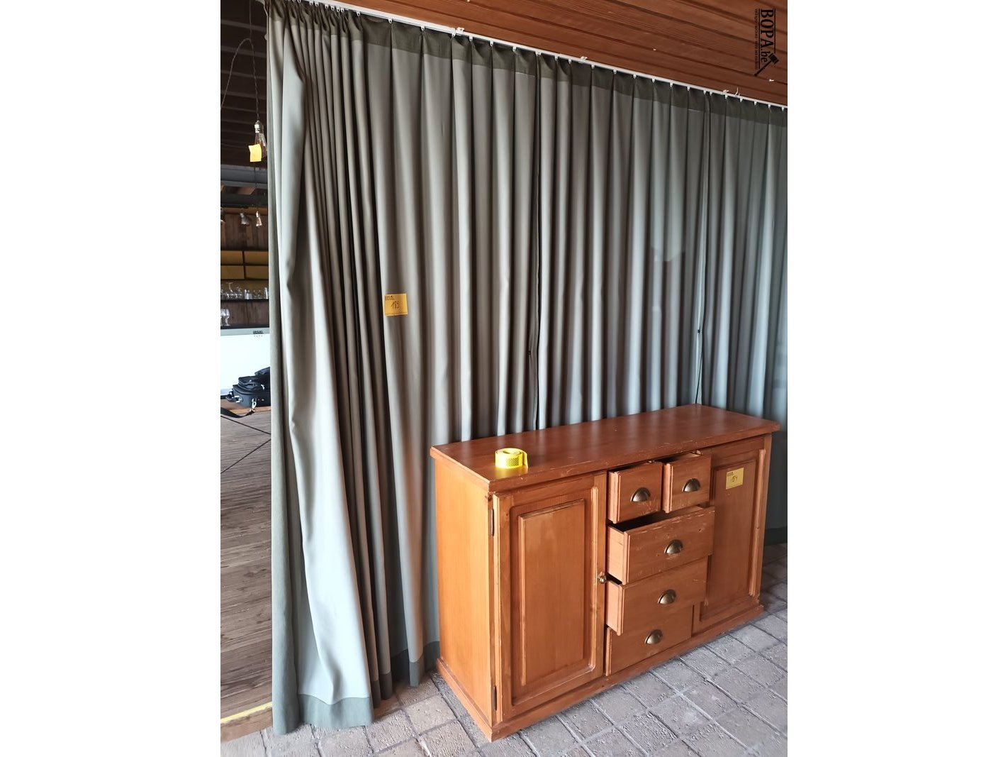 Gordijnen. Nog te demonteren.
