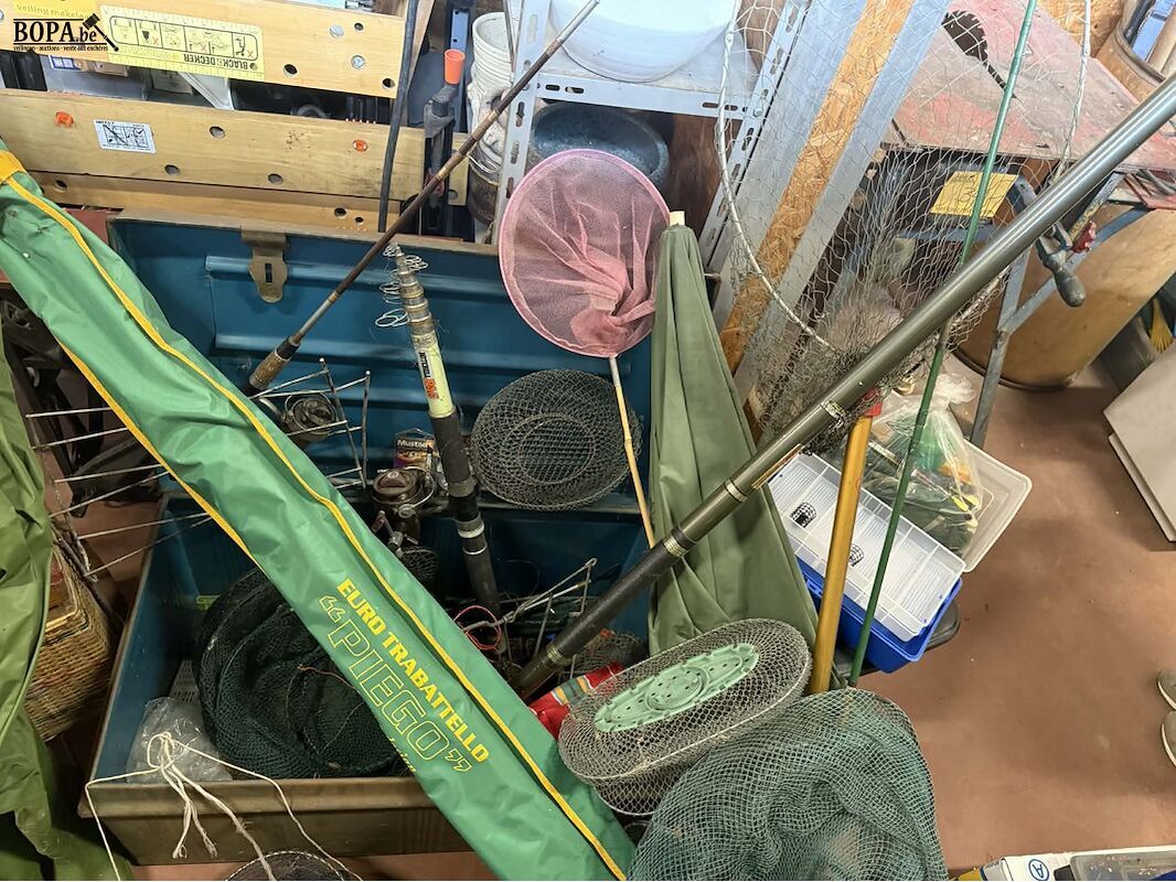 Lot 35 - lot vissersgerief allerlei in koffer + vissersmandje