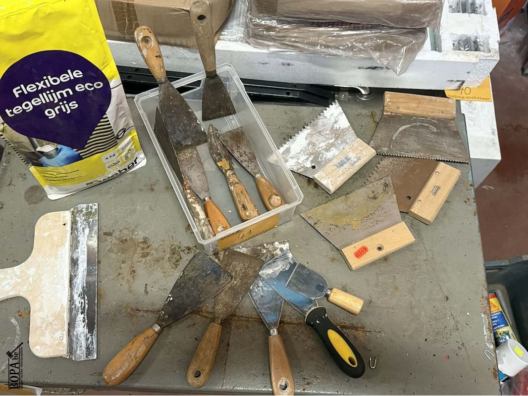 Lot 49 - lot lijmkammen, steek- en plamuurmessen + flex. tegellijm 4