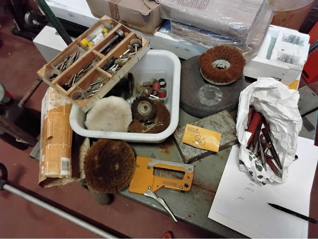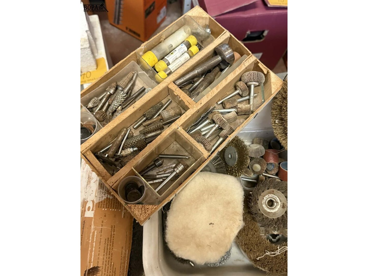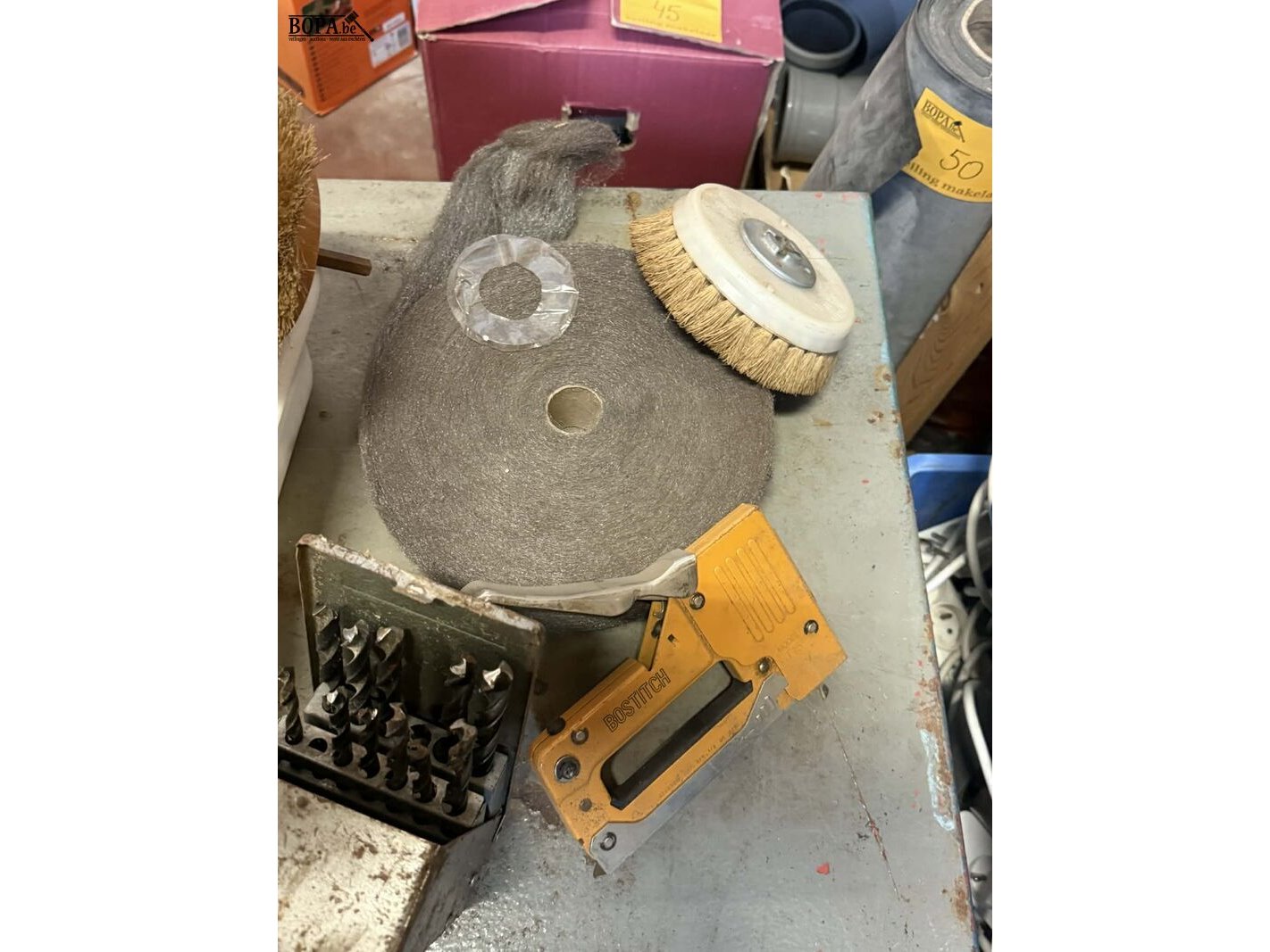 Diverse boorkitjes, staalwol, roterende borstels, schuurschijven, nietmachine Rottich