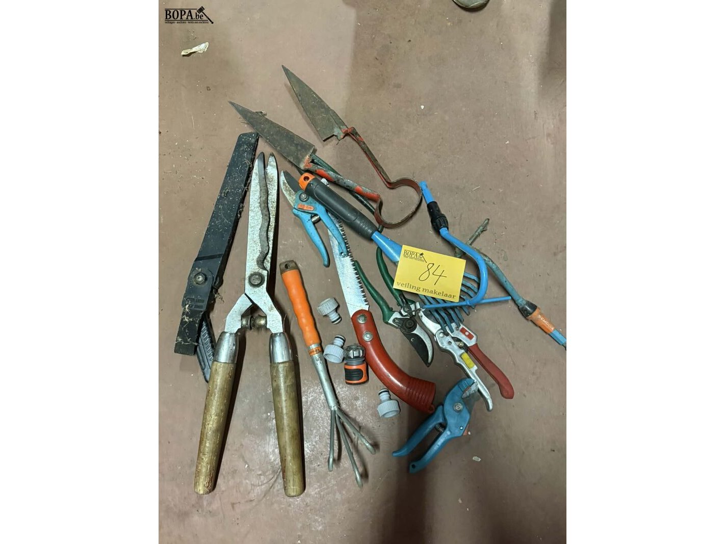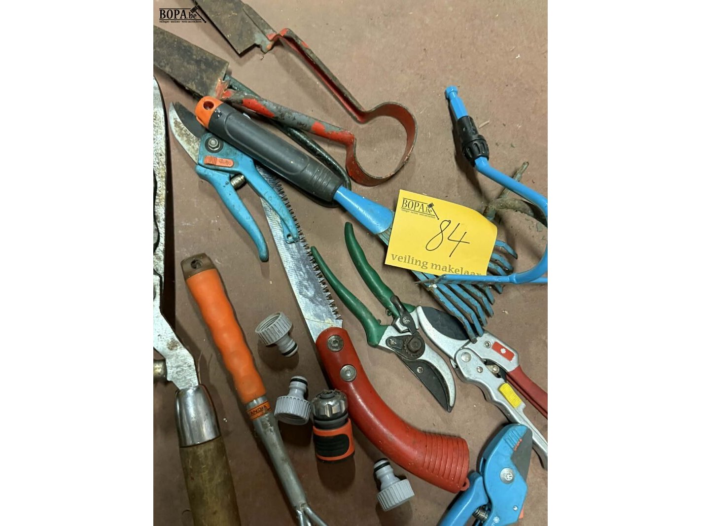 Lot 84 - assortiment tuingereedschap: snoeischaren en hark circa 15 s