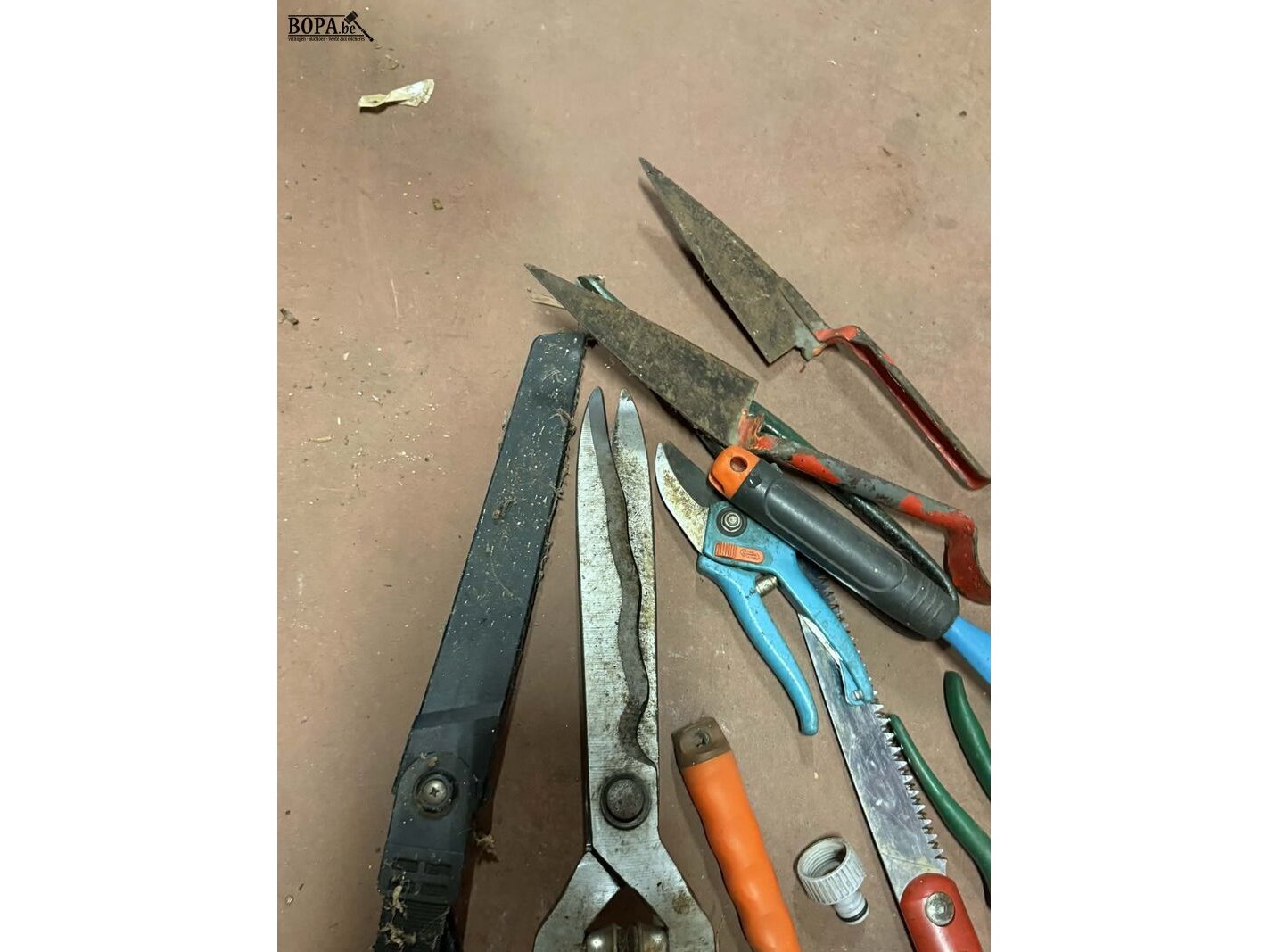Assortiment tuingereedschap: snoeischaren en hark circa 15 stuks, boomzagen