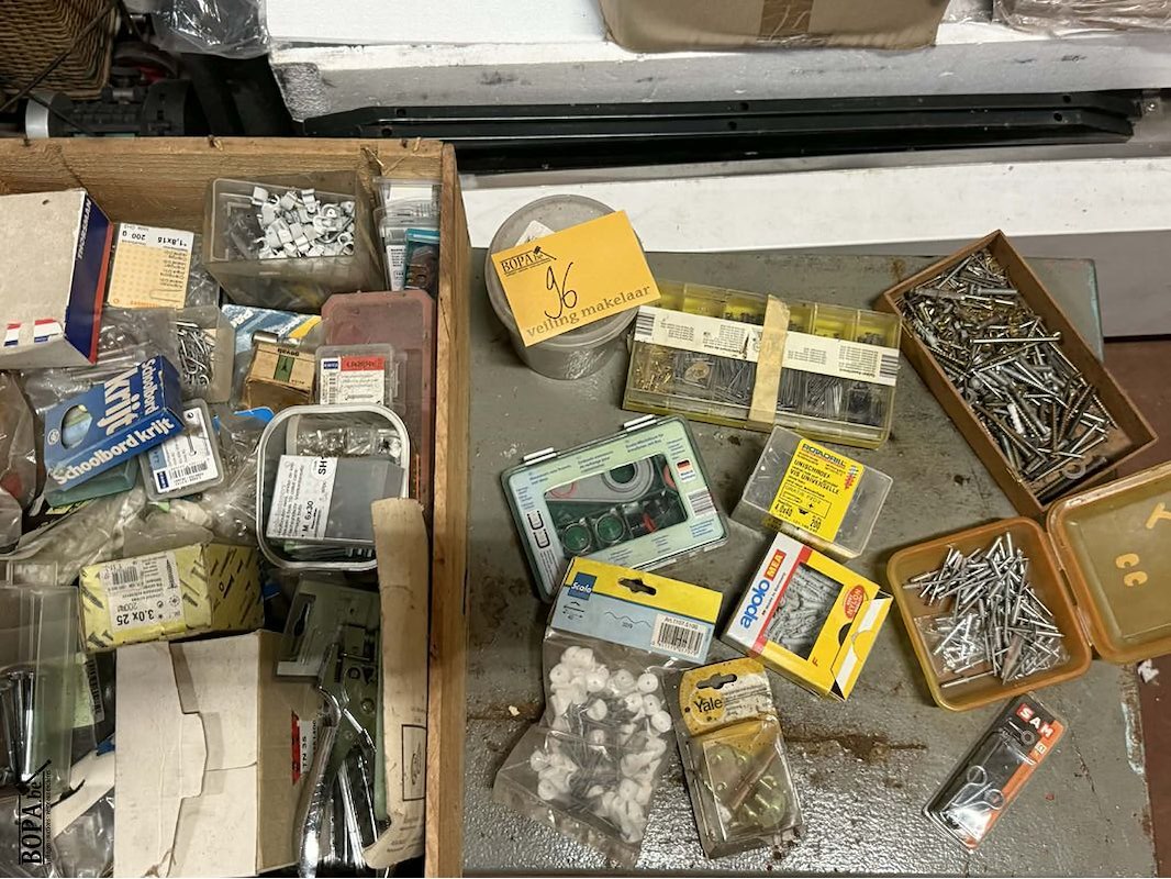 Lot 96 - lot vijzen, nagels, rondellen, pluggen, sloten, mesjes,…