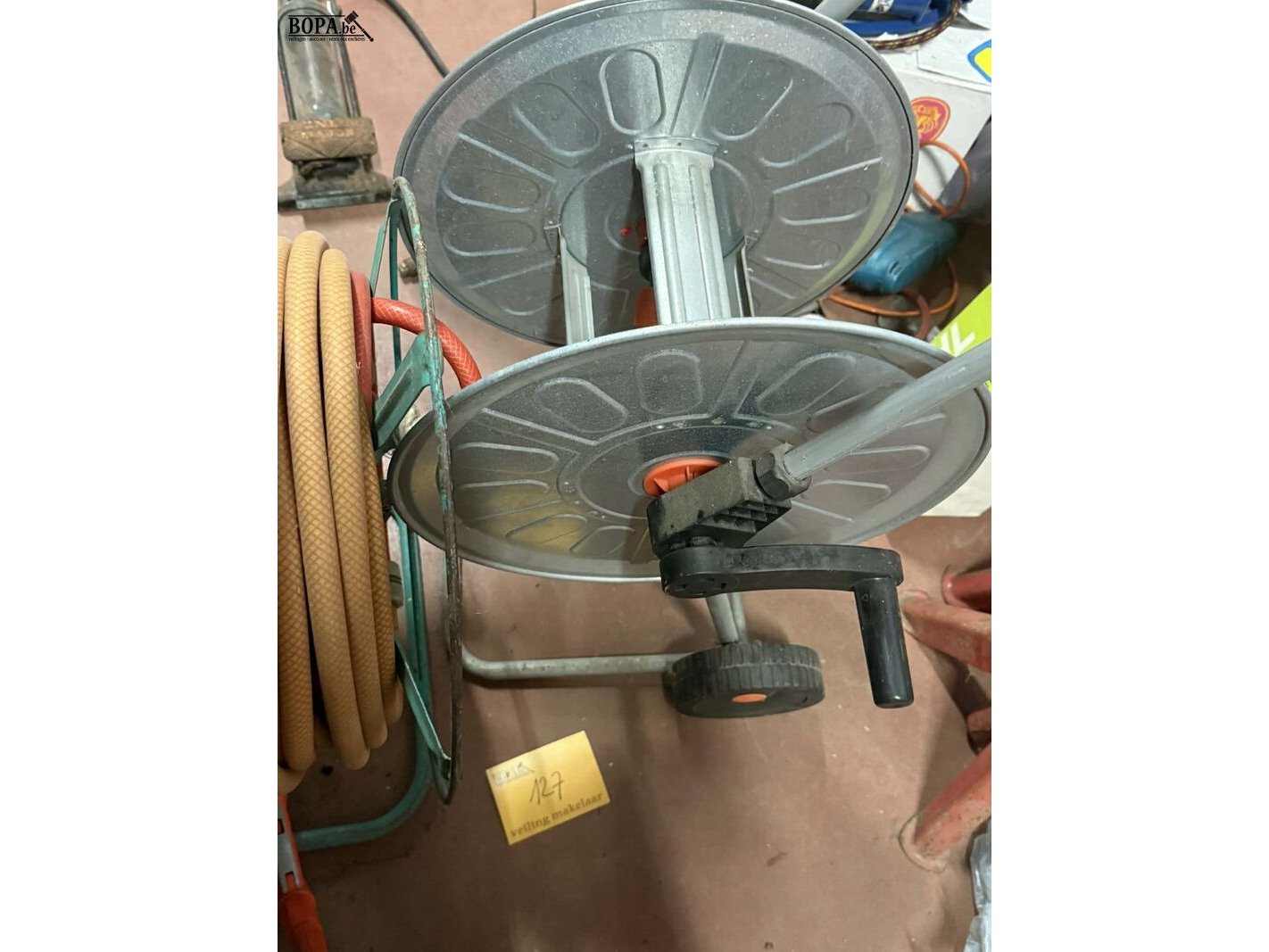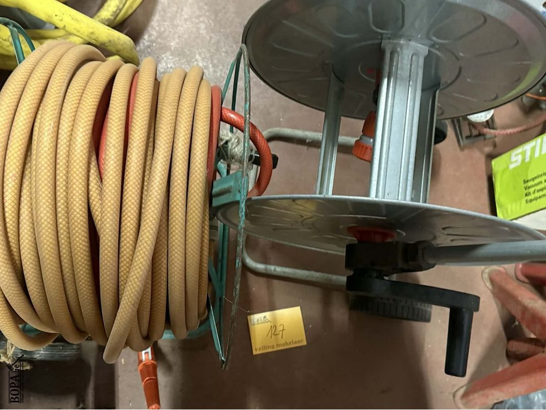 Lot 127 - haspels met tuinslang in metaal en aluminium 2 stuks