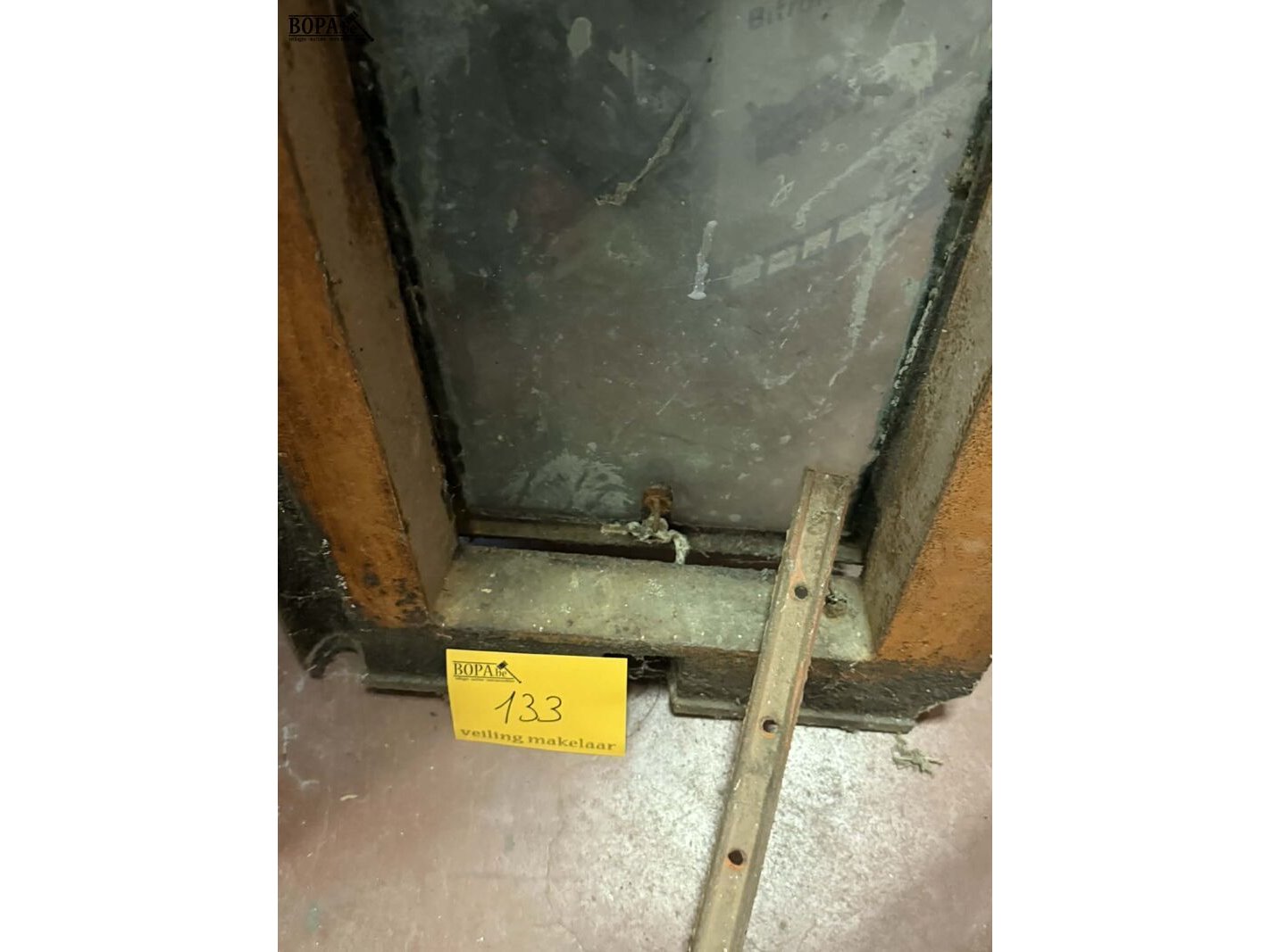 Lot 133 - oud dakraamkozijn in metaal: buitenwand 35*54 binnenwand 24*