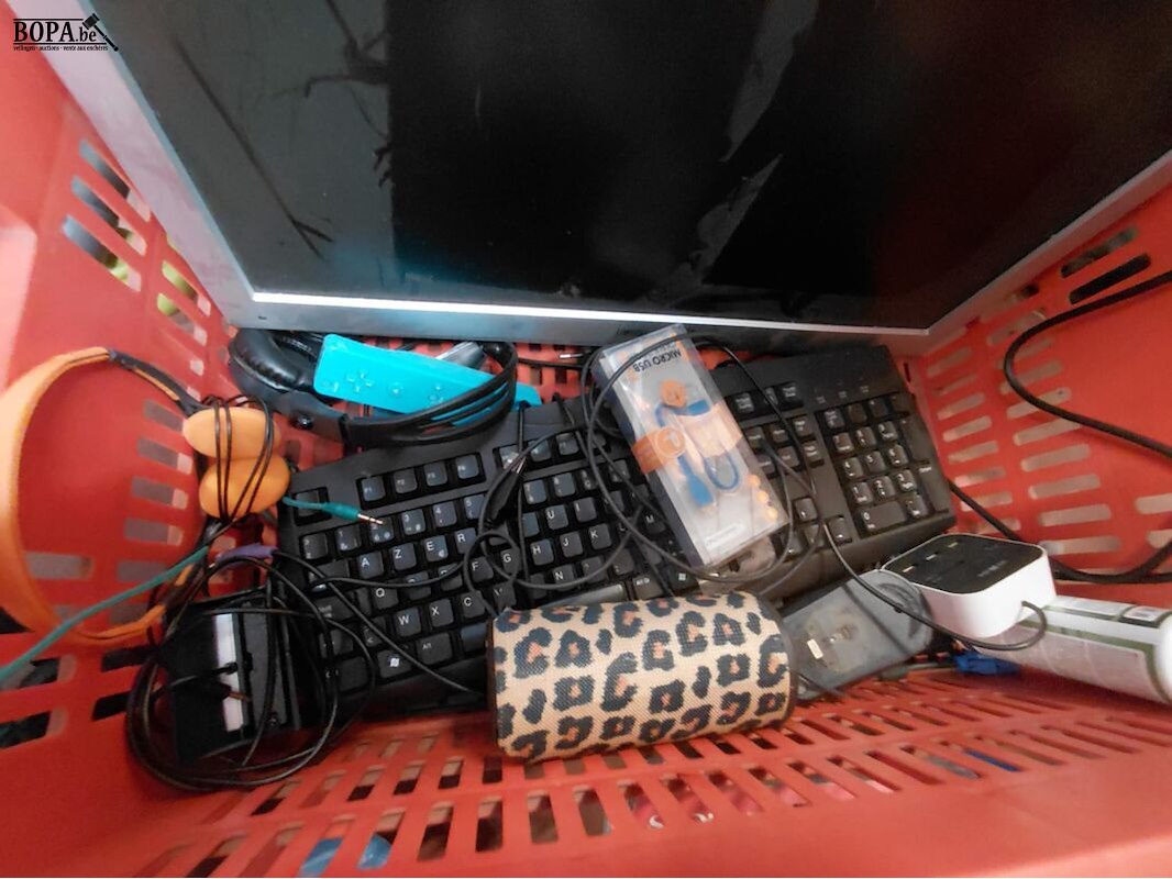 Lot pc artikelen: keyboards 3 stuks, headset 4, scartkabel nieuw, scandisk phot album nieuw, scherm, muis