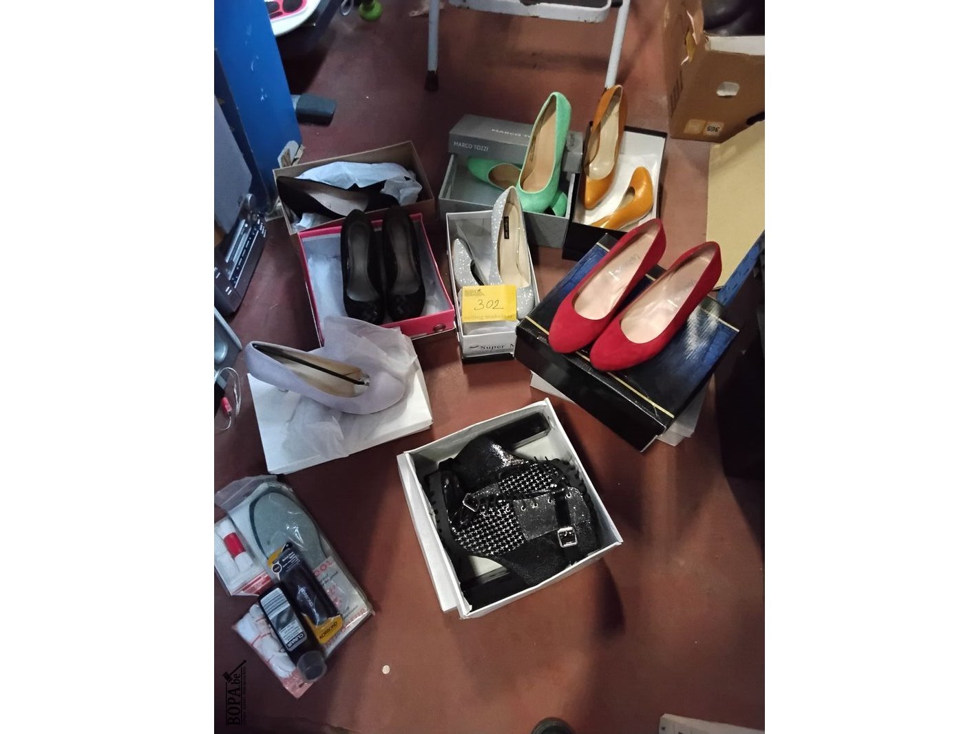 Lot 302 - pumps 8 st en laarsjes 2 st + onderhoudsproducten