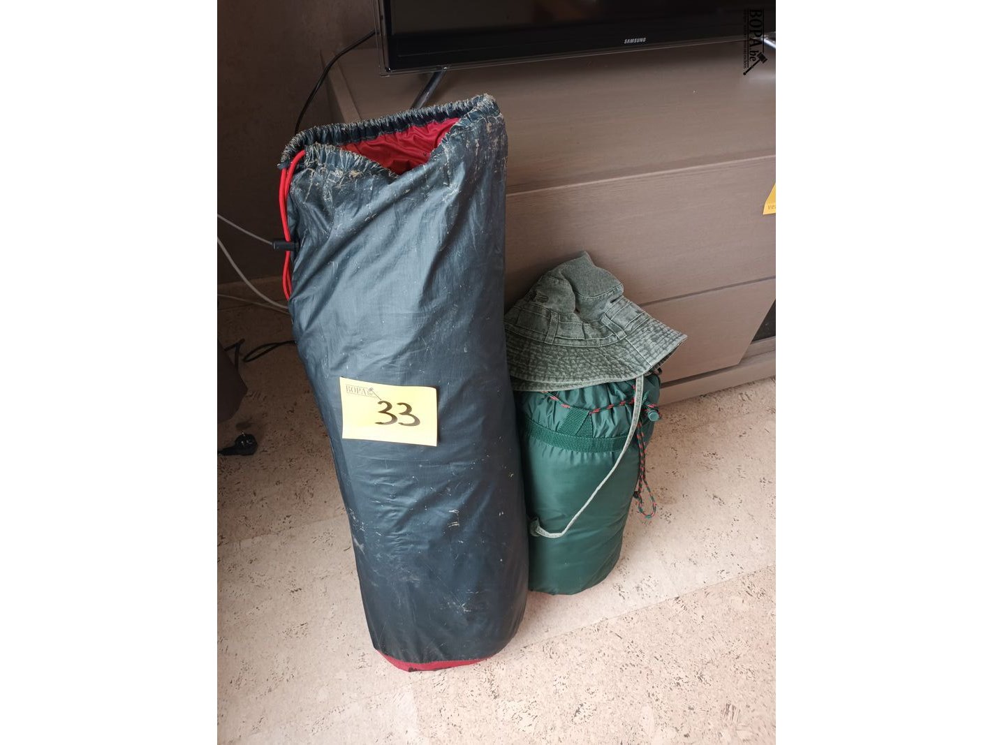 Kampeergerei. 3 stuks waaronder slaapzak.