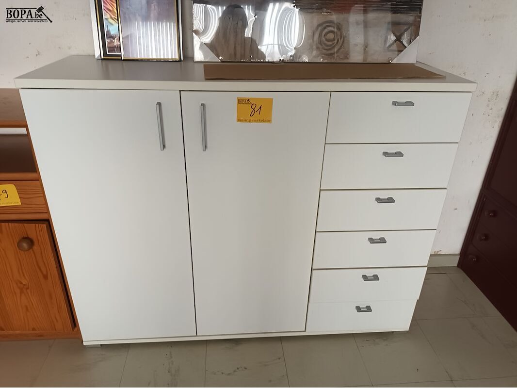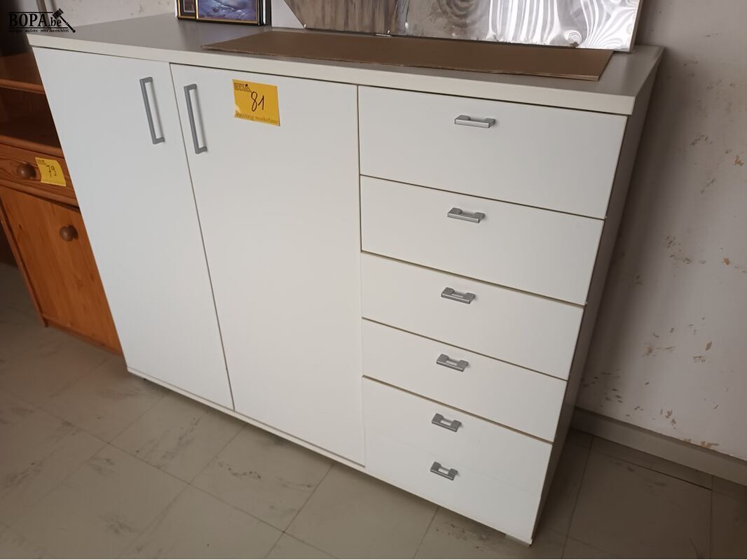 Witte melamine kast met 2 deuren en 6 lades. 131 x 43 x 103 cm.