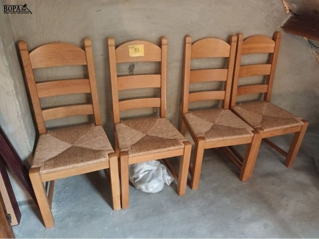 4 houten stoelen met biezen zitting in nieuwstaat.