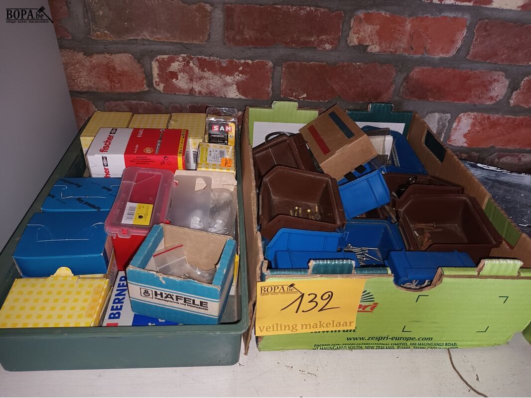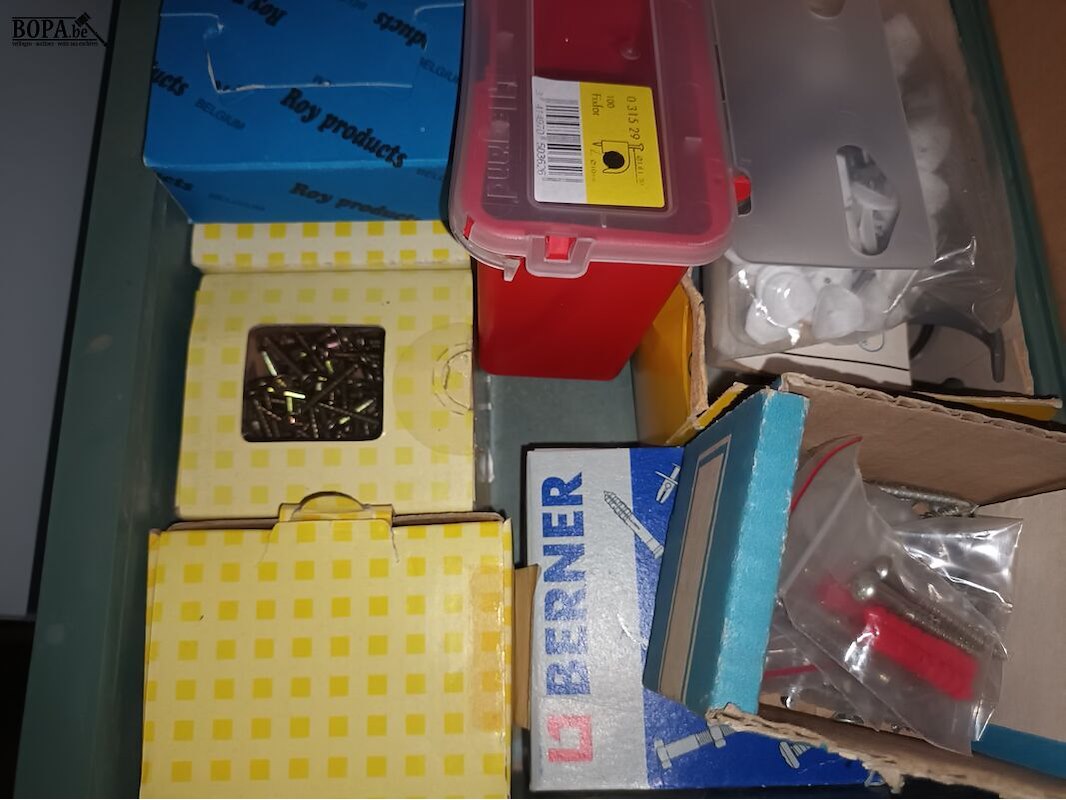 Bevestigingsmateriaal zoals vijzen, pluggen, nagels. 2 dozen.