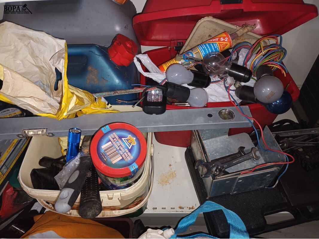 Groot lot werkmateriaal zoals bevestigingsmateriaal, gereedschap, producten, etc.