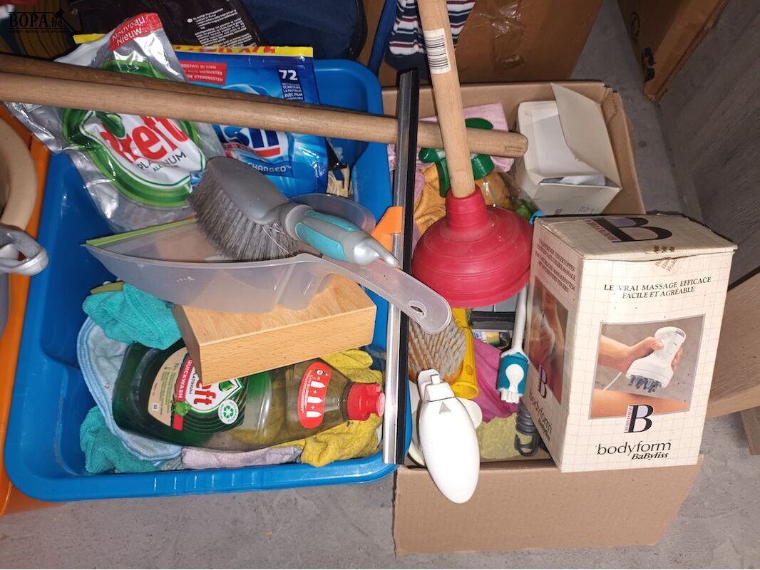 Groot lot schoonmaakmateriaal.