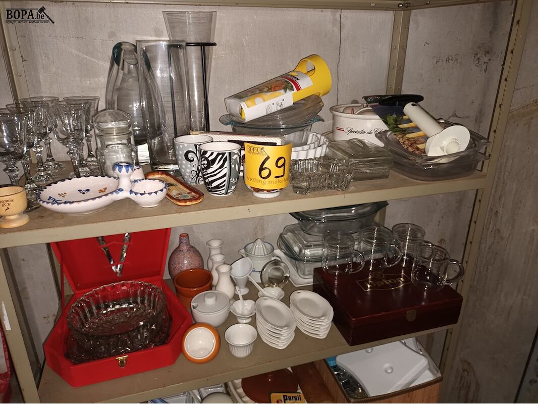 Lot 69 - keukenmateriaal en huisraad. inhoud rek