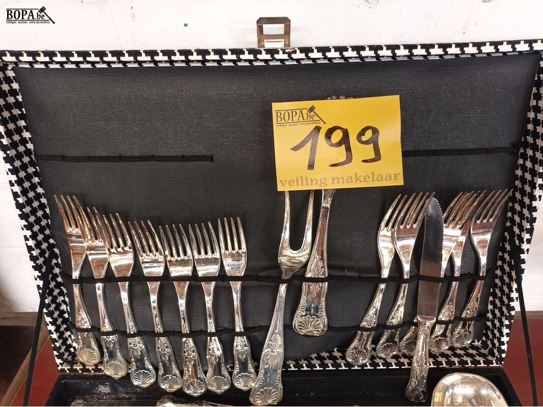 Lot 199 - bestekkoffer met verzilverd bestek