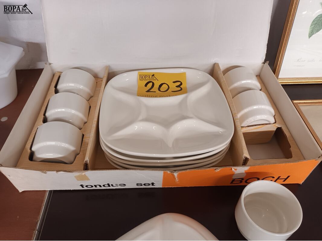 Fondue set Boch. 12 stuks. Keralux Boch Frères Belgium.