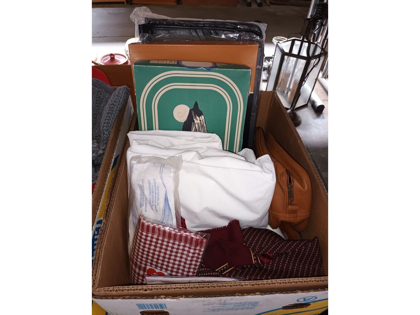 Kledij en bedlinnen. 3 dozen.
