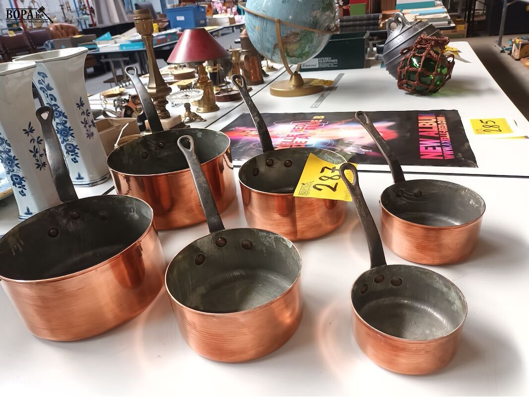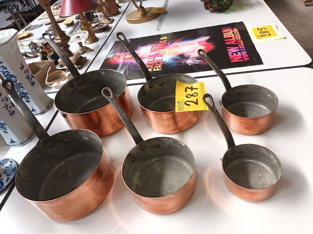 Steelpannen in rood koper. 6 stuks.