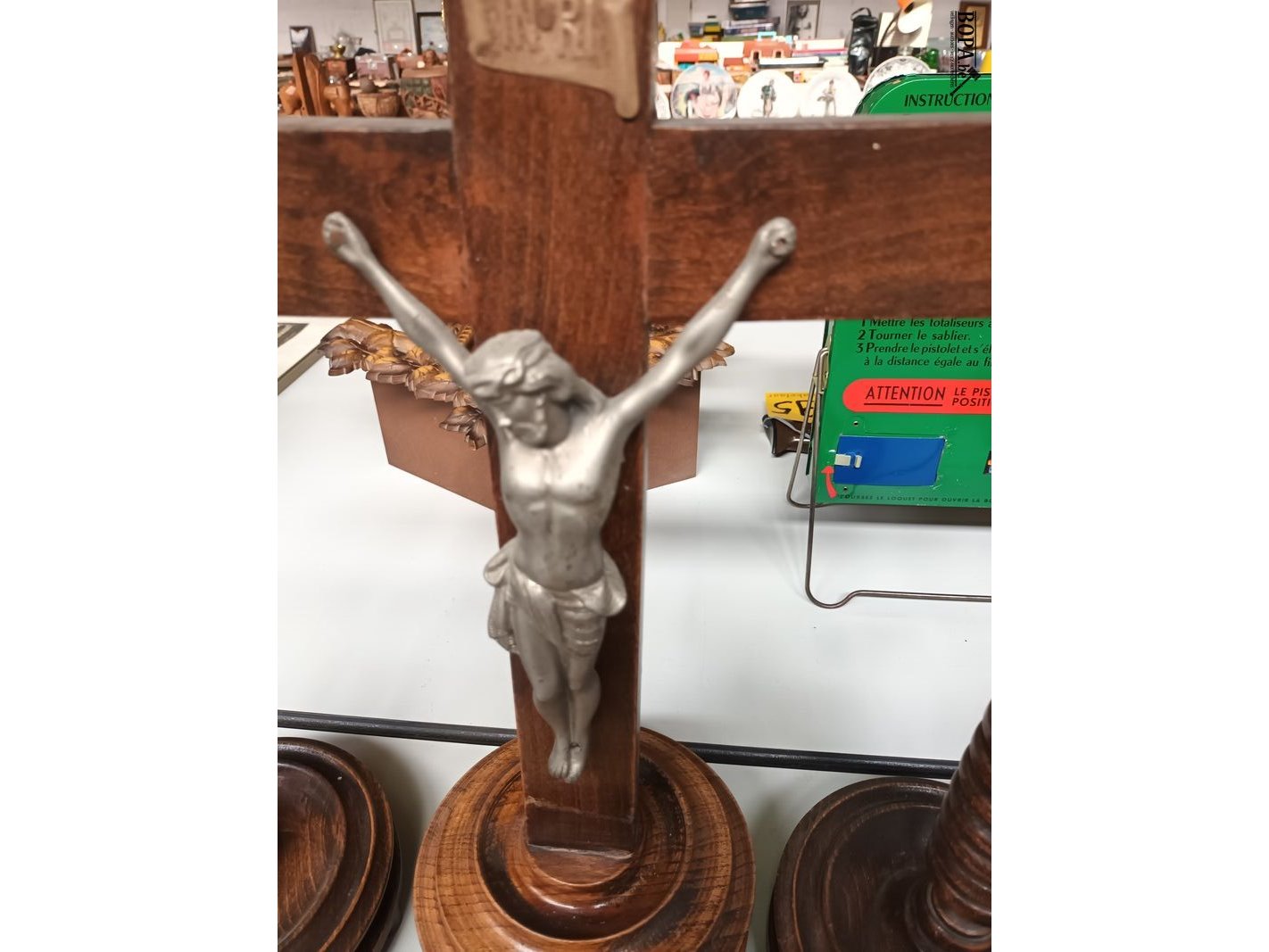 Kruisbeeld met 2 kandelaars. Hoogte 45 cm.