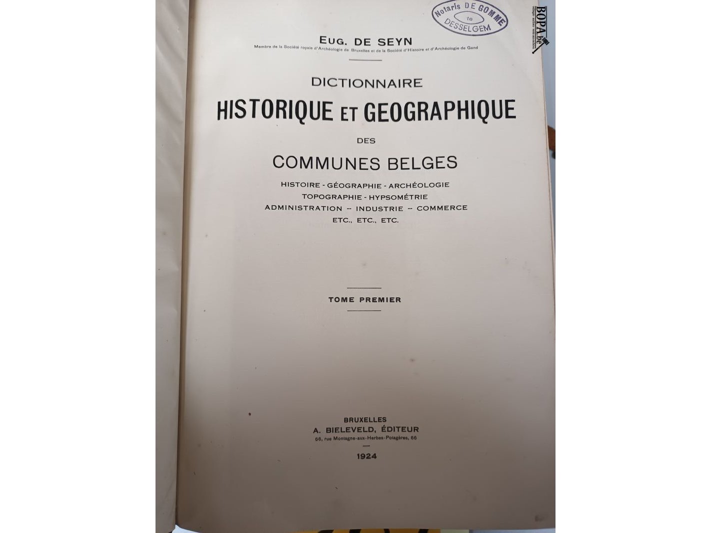 Dictionnaire historique et géographique des communes Belges. 2 boeken uit 1924 en 1925. Deel 1 is gesigneerd door de auteur Eugène de Seyn.