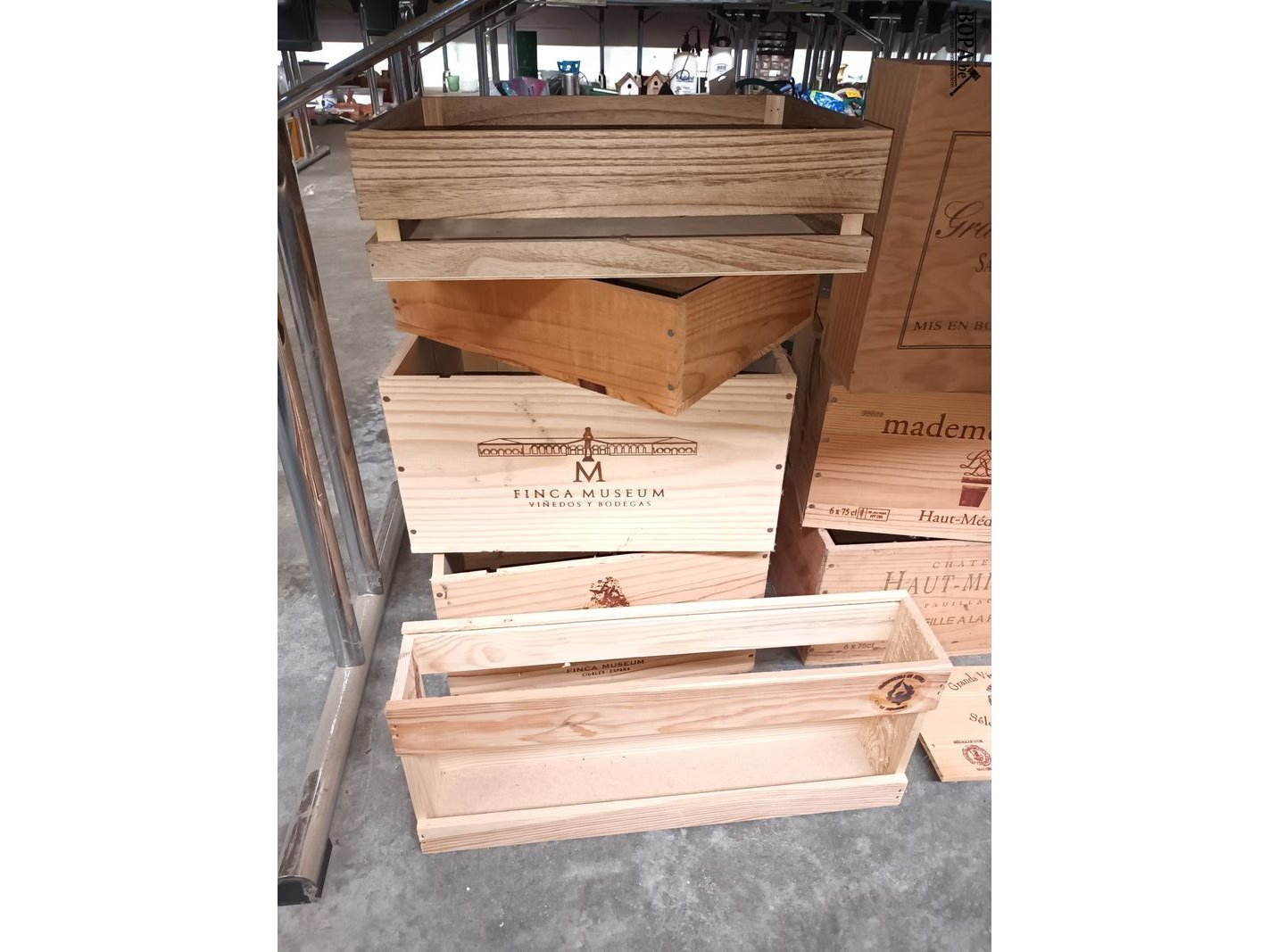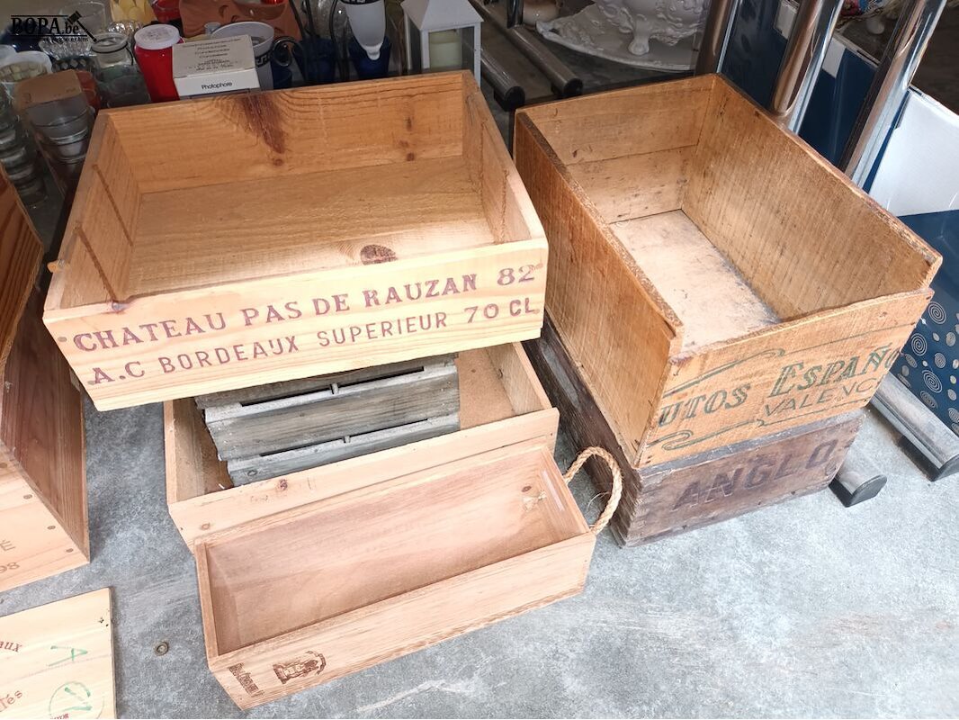 Wijnkistjes en houten bakjes. 14 stuks.