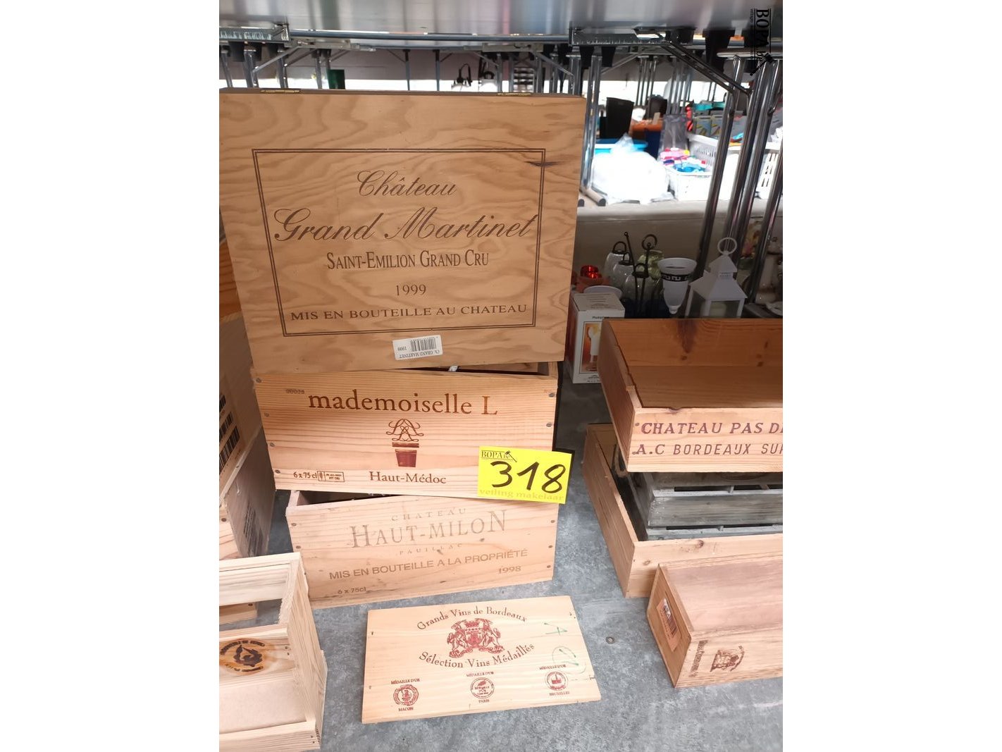 Lot 318 - wijnkistjes en houten bakjes. 14 stuks
