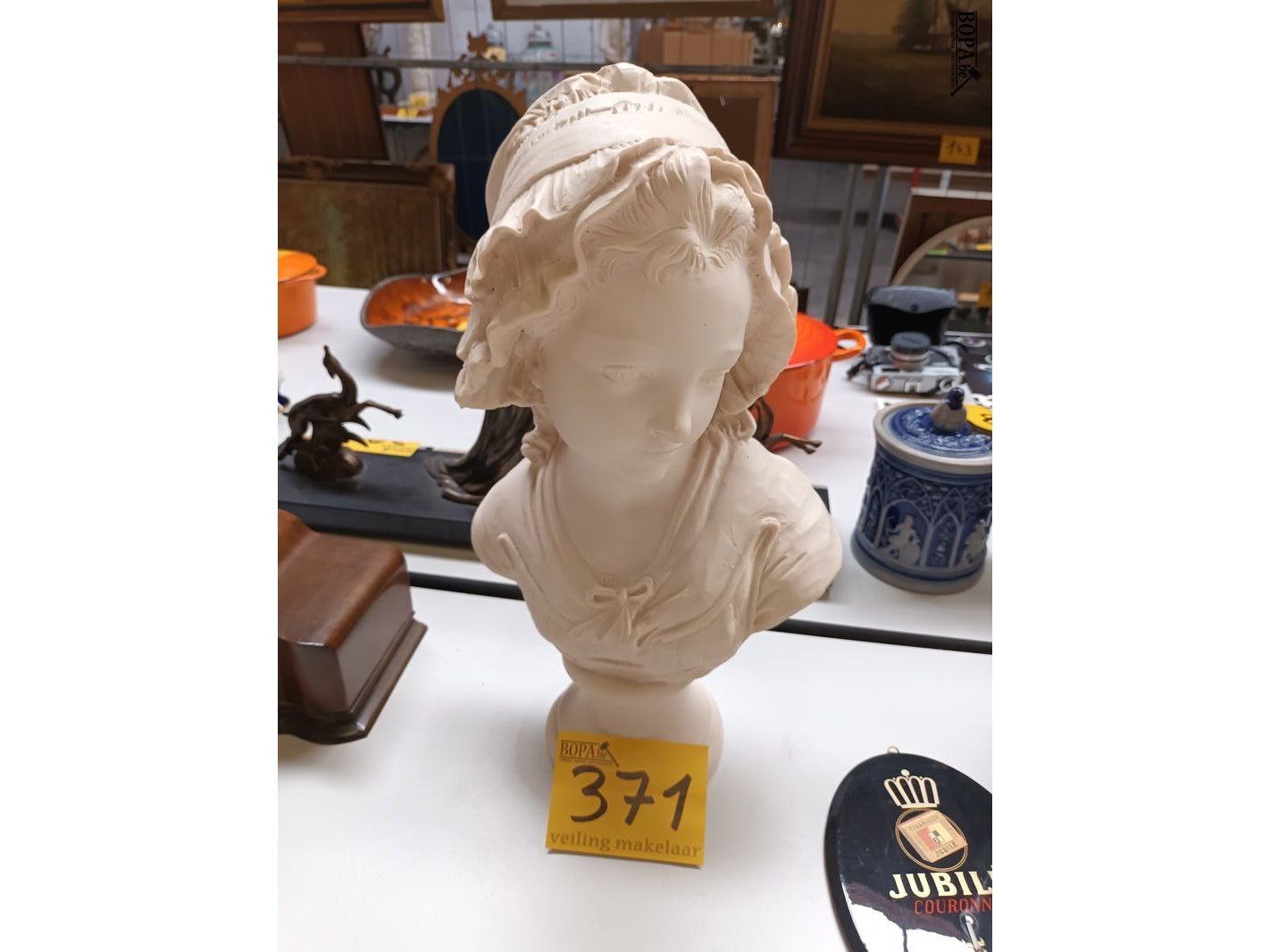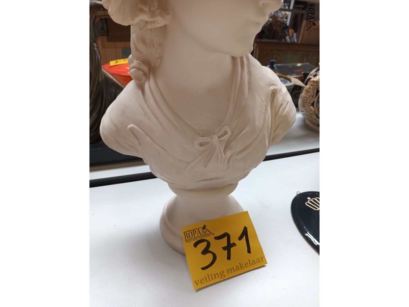Buste jonge vrouw in ivorine. Getekend Paris. Hoogte 45 cm.